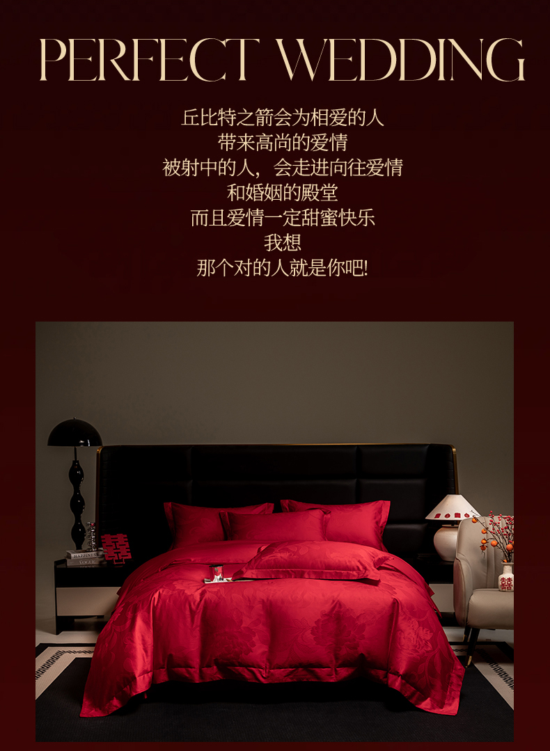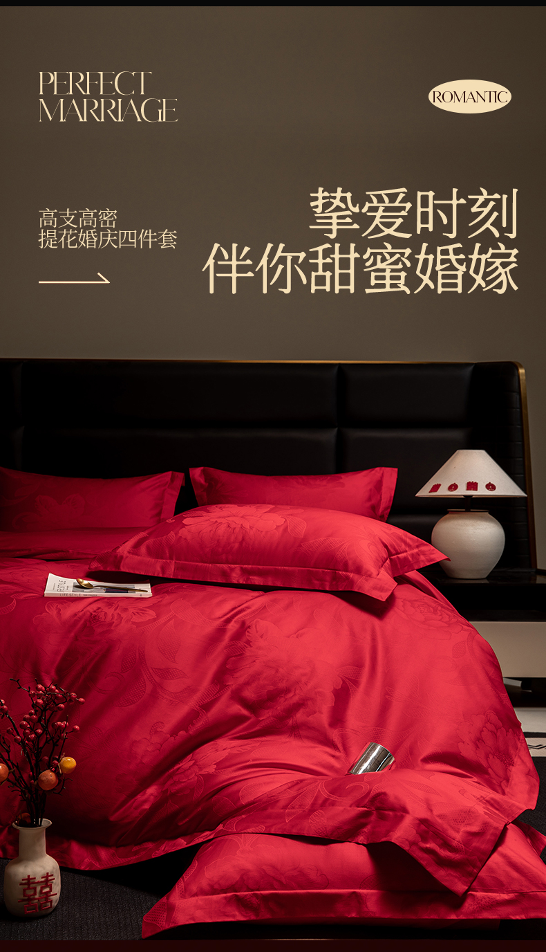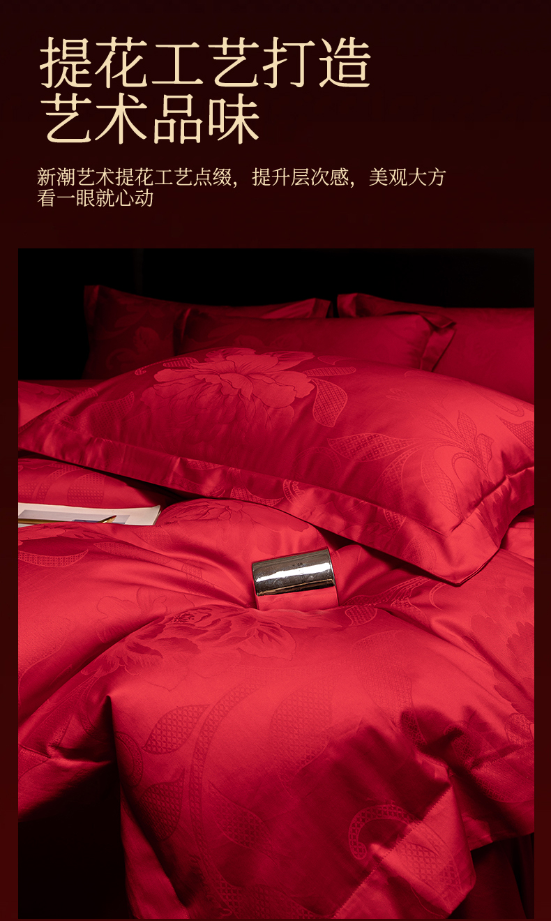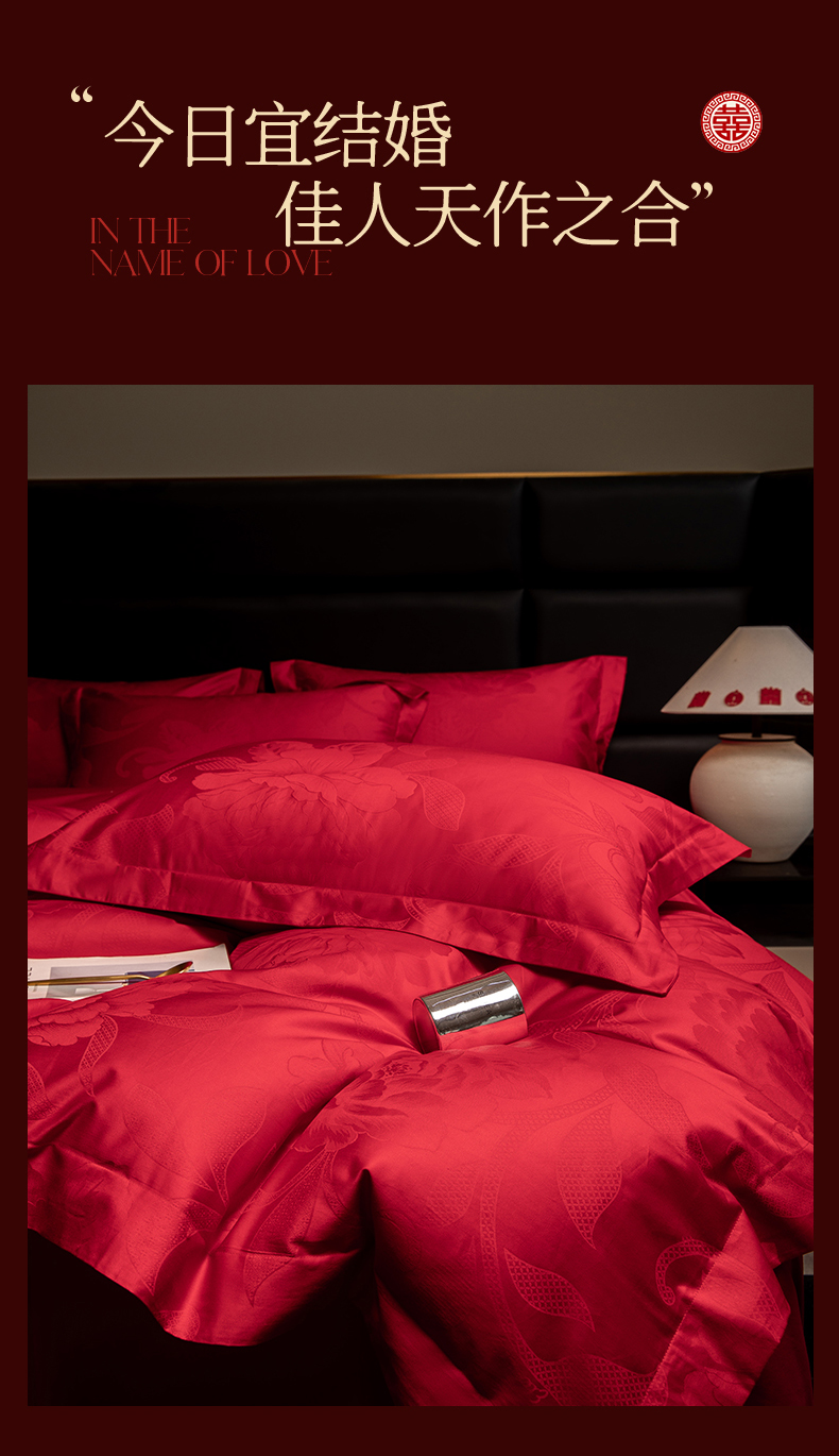 (总)欧乐蒂 2025新款高支高密提花婚庆四件套,龙凤美满,玫瑰情缘,双囍-红,双囍-金,叶叶情深