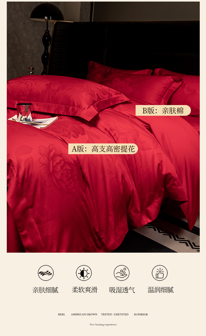 (总)欧乐蒂 2025新款亲肤棉提花婚庆四件套-玫瑰喜事,龙凤有喜-金,玫瑰喜事-红,玫瑰喜事-金