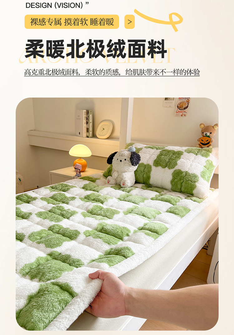 当前位置: 91家纺网 > 商品网购 > 床垫/床褥 > 普通床垫 > 眠势力 2025新款北极绒学生床垫加绒牛奶绒床褥子秋冬保暖珊瑚绒夹棉上下铺床护垫 棋盘格-青草绿