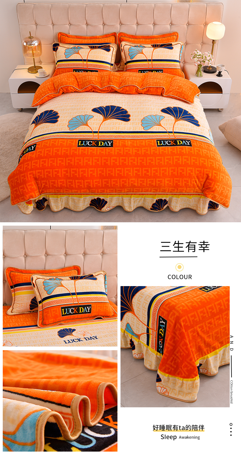 当前位置: 91家纺网 > 商品网购 > 床品套件 > 四件套 > 牛奶绒四件套 > 博兰蒂 2025新款床裙款高克重牛奶绒印花四件套三生有幸