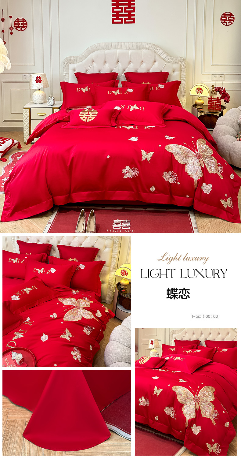 (总)欧乐蒂 2025新款亲肤棉刺绣花边婚庆四件套-浪漫花季,浪漫花季-红,浪漫花季-金