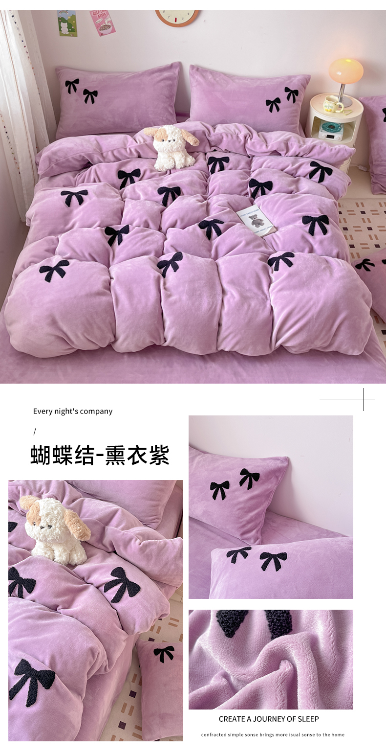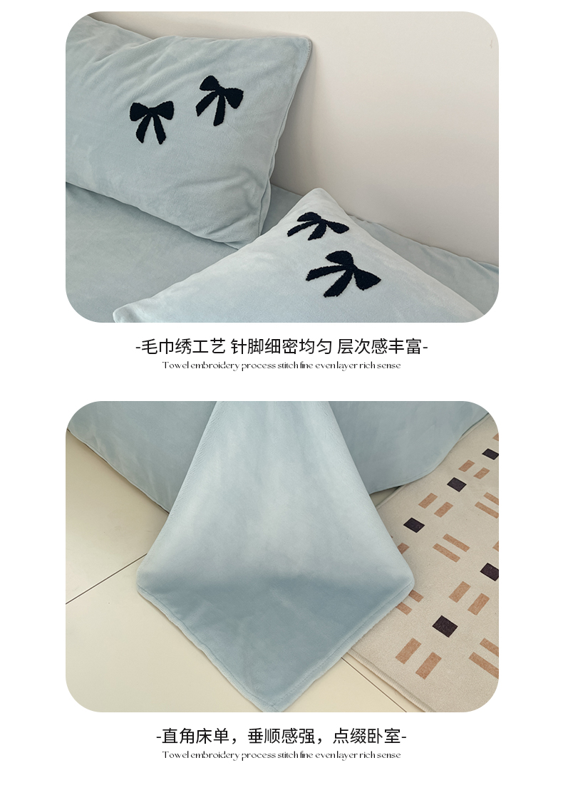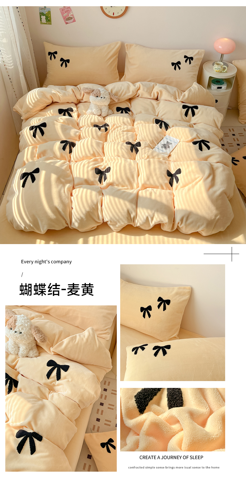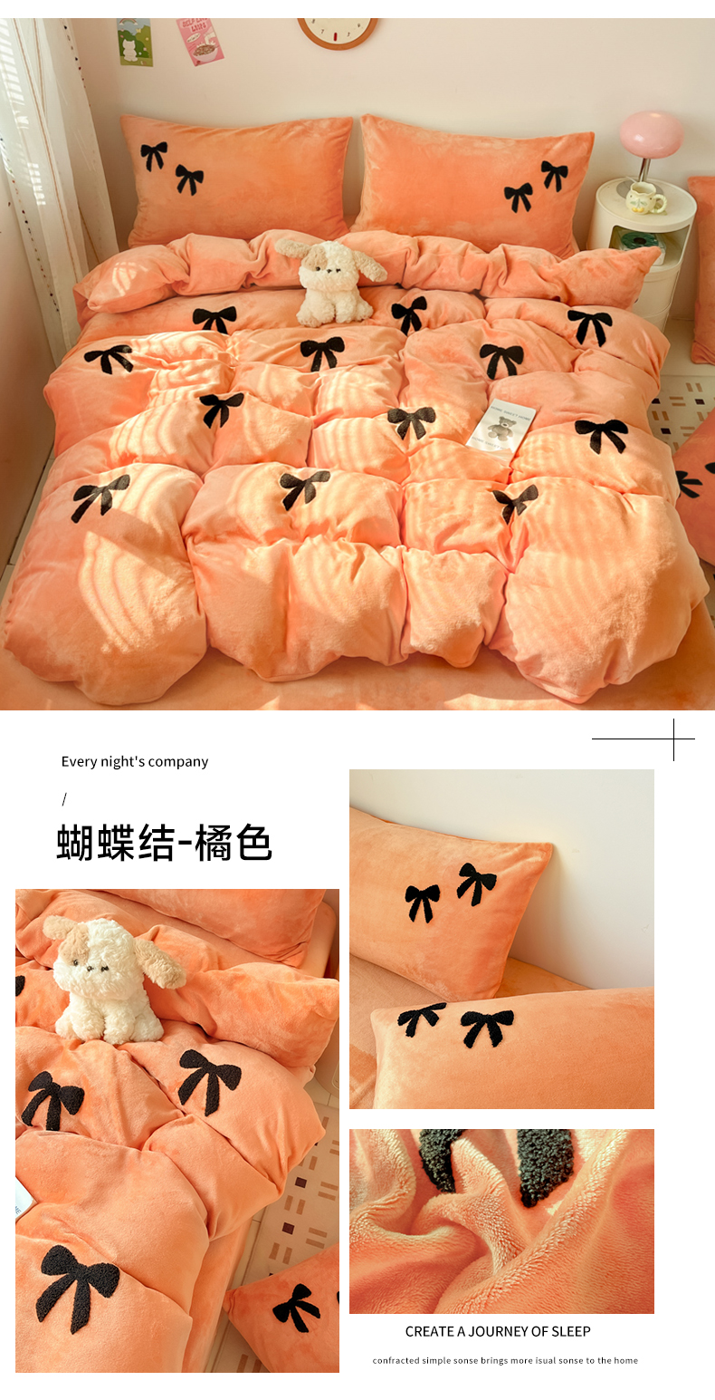 (总)喜梦缘家纺 2025新款 加厚加密高克重毛巾绣牛奶绒四件套,蝴蝶结-粉,蝴蝶结-红豆沙,蝴蝶结-灰,蝴蝶结-橘色,蝴蝶结-麦黄,蝴蝶结-米杏,蝴蝶结-天空蓝,蝴蝶结-熏衣紫,蝴蝶结-玉色