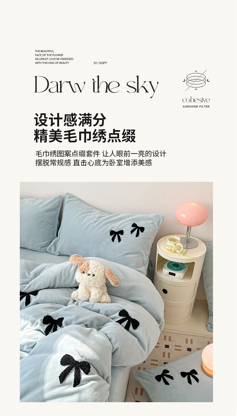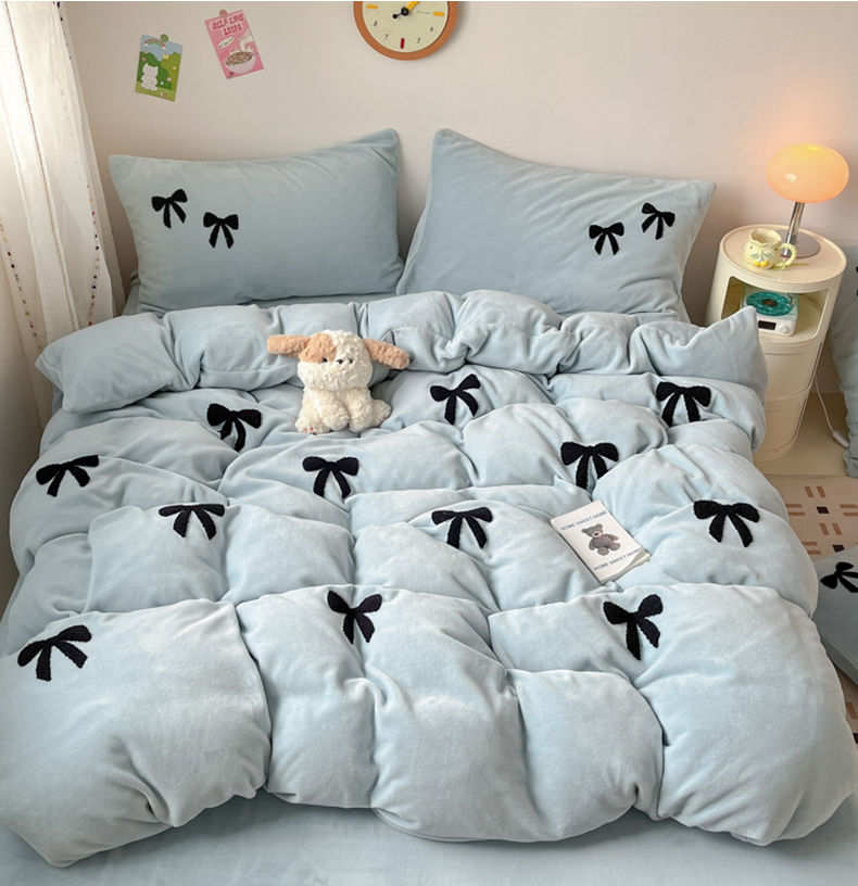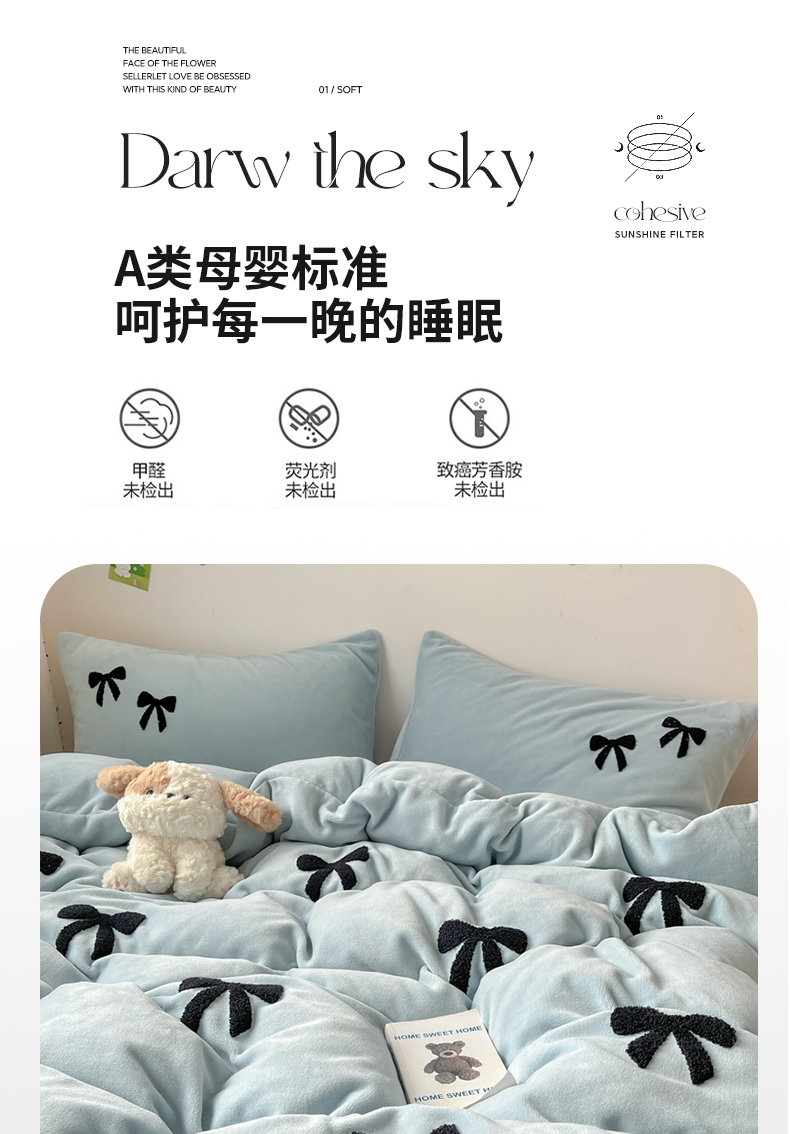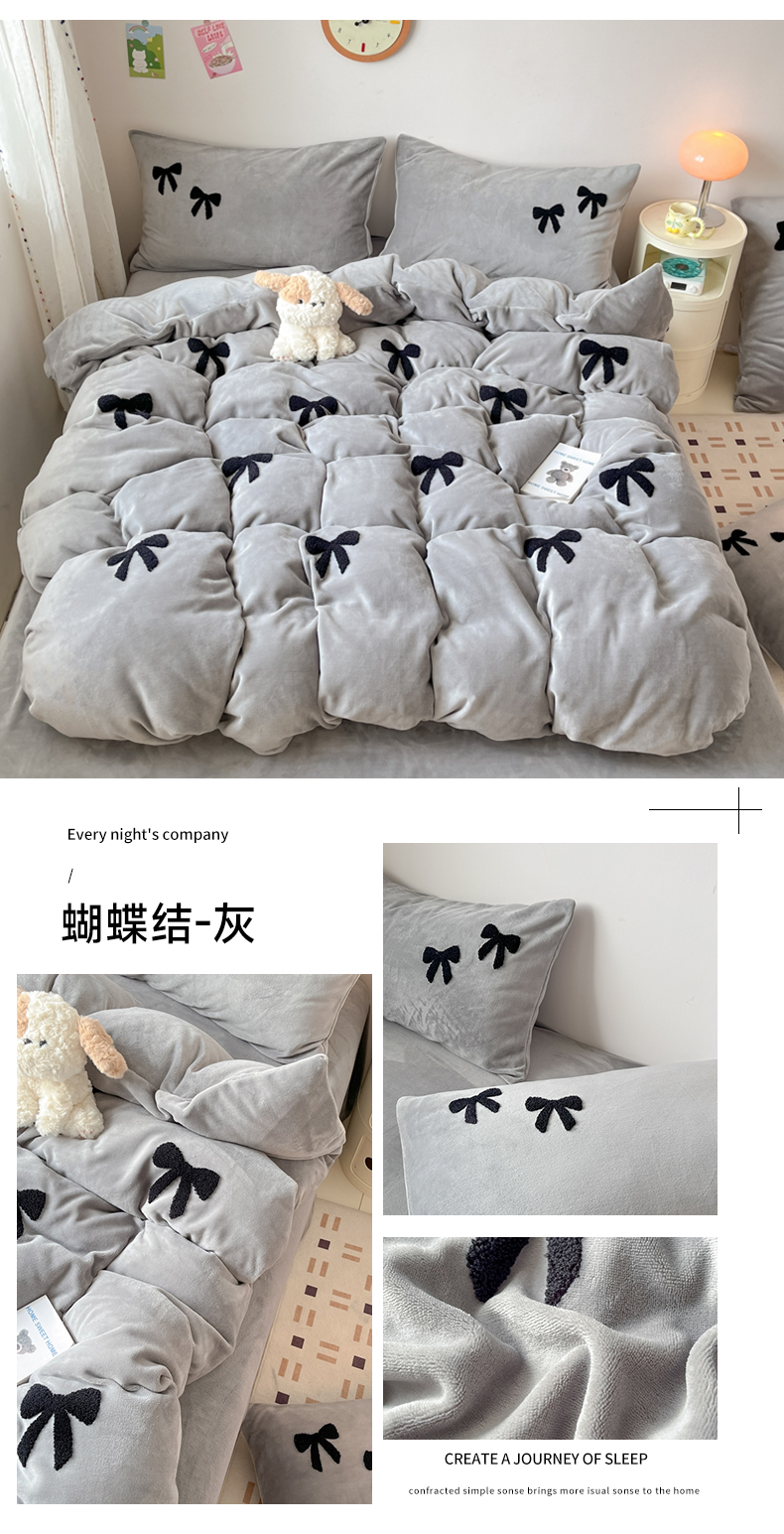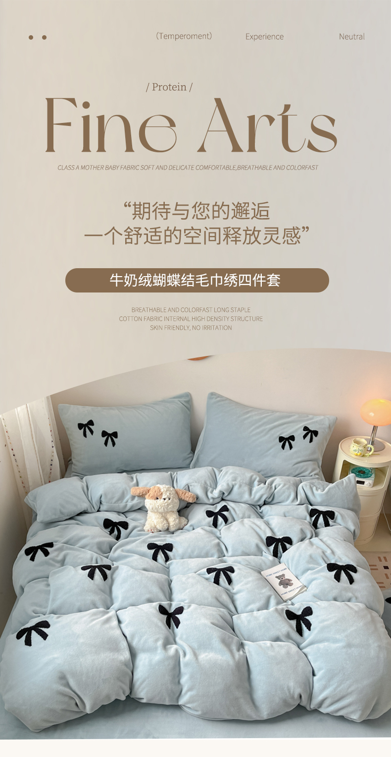 (总)喜梦缘家纺 2025新款 加厚加密高克重毛巾绣牛奶绒四件套,蝴蝶结-粉,蝴蝶结-红豆沙,蝴蝶结-灰,蝴蝶结-橘色,蝴蝶结-麦黄,蝴蝶结-米杏,蝴蝶结-天空蓝,蝴蝶结-熏衣紫,蝴蝶结-玉色
