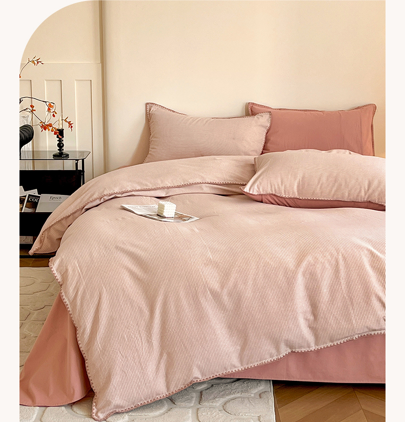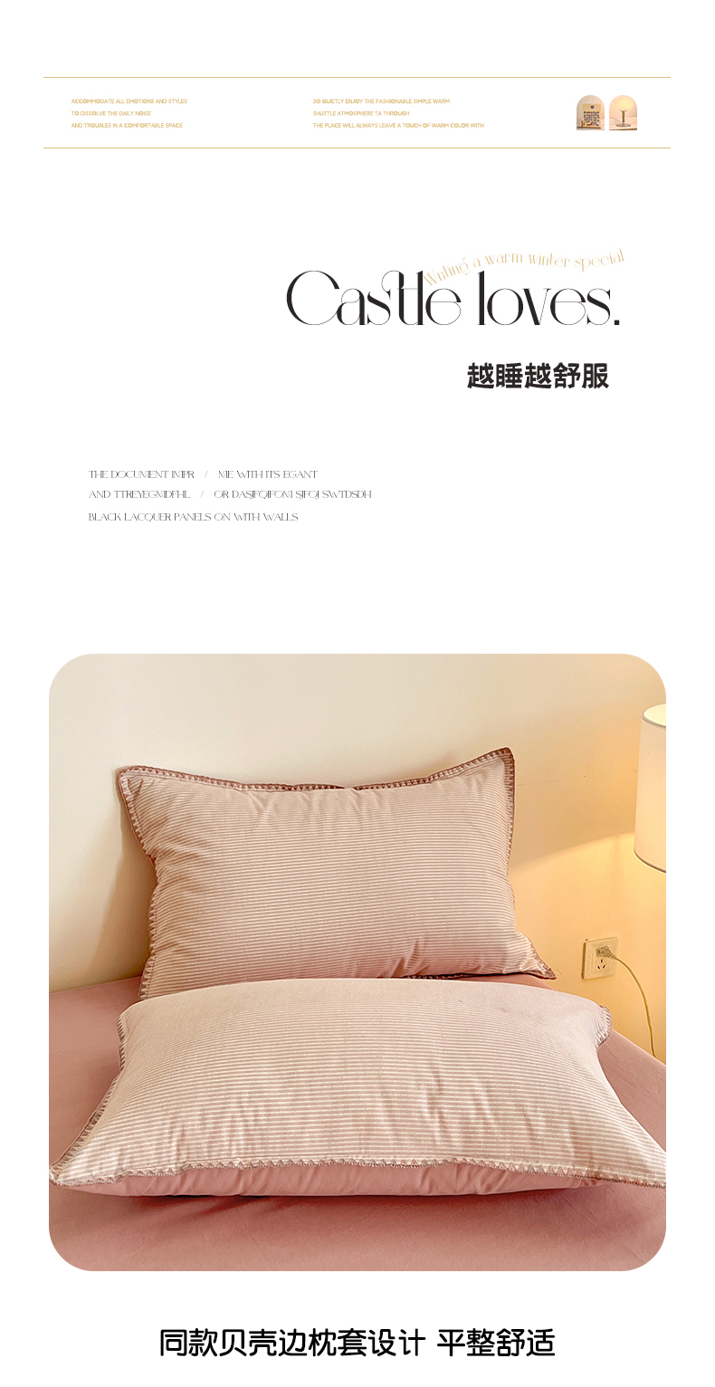 商品名称:品乐家纺 2025秋冬全棉加厚磨毛贝壳边四件套 简森-粉
