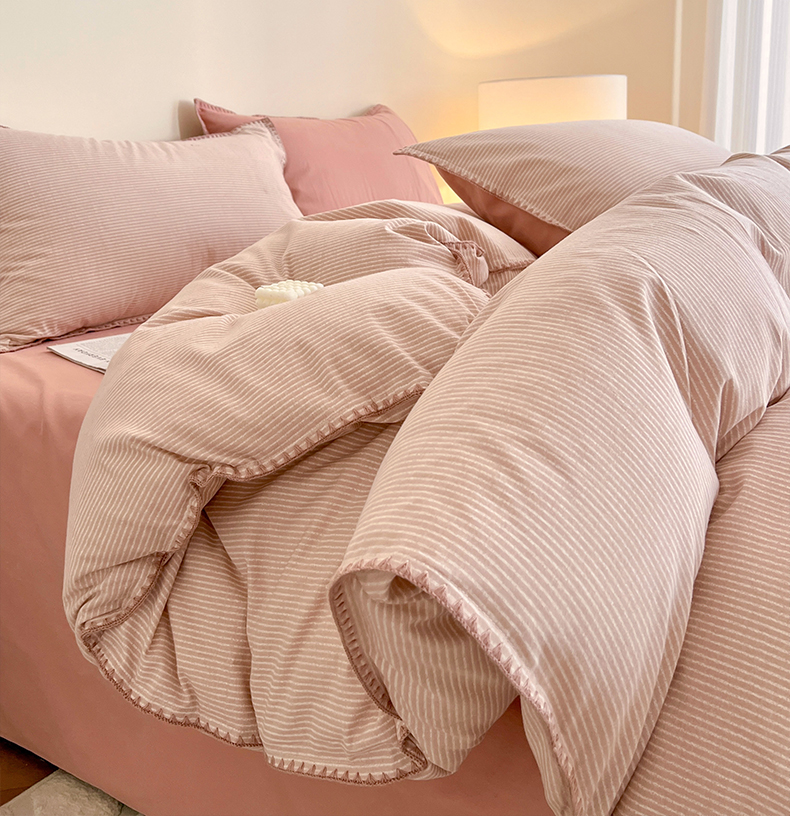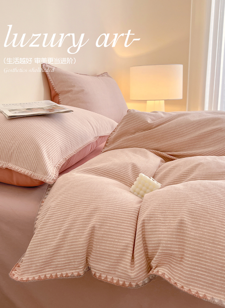 品乐家纺 2025秋冬全棉加厚磨毛贝壳边四件套 简森-粉