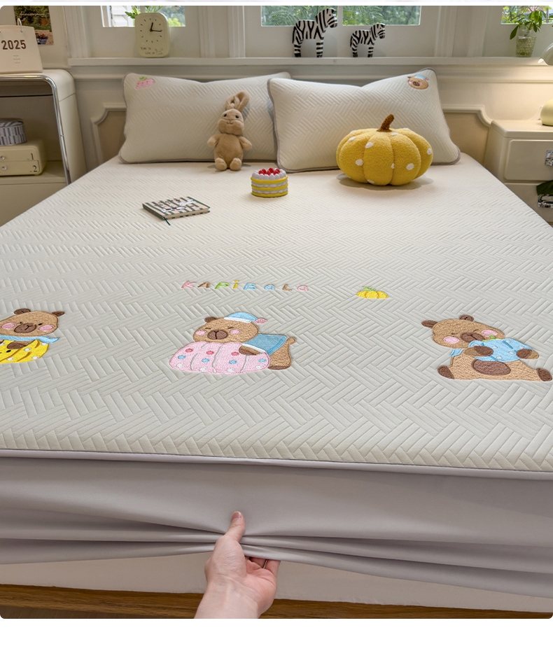 当前位置: 91家纺网 > 商品网购 > 床上用品 > 床垫套 > 眠多宝 2025新款三联刺绣卡通夹棉床笠全包围床垫保护套 欢乐卡皮巴拉-淡奶黄