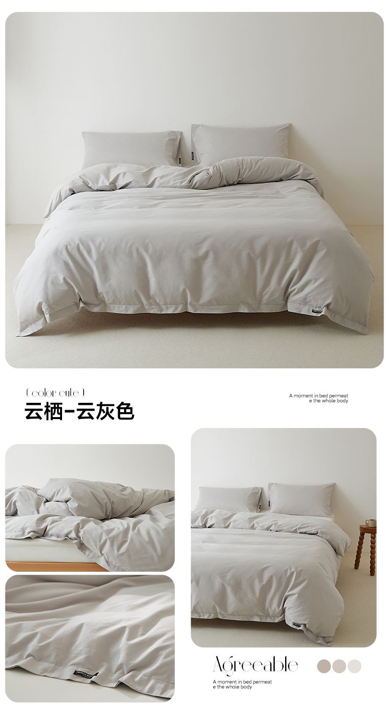 EH家居 2025新款全棉磨毛纯色单被套-云栖系列 云栖-云灰色
