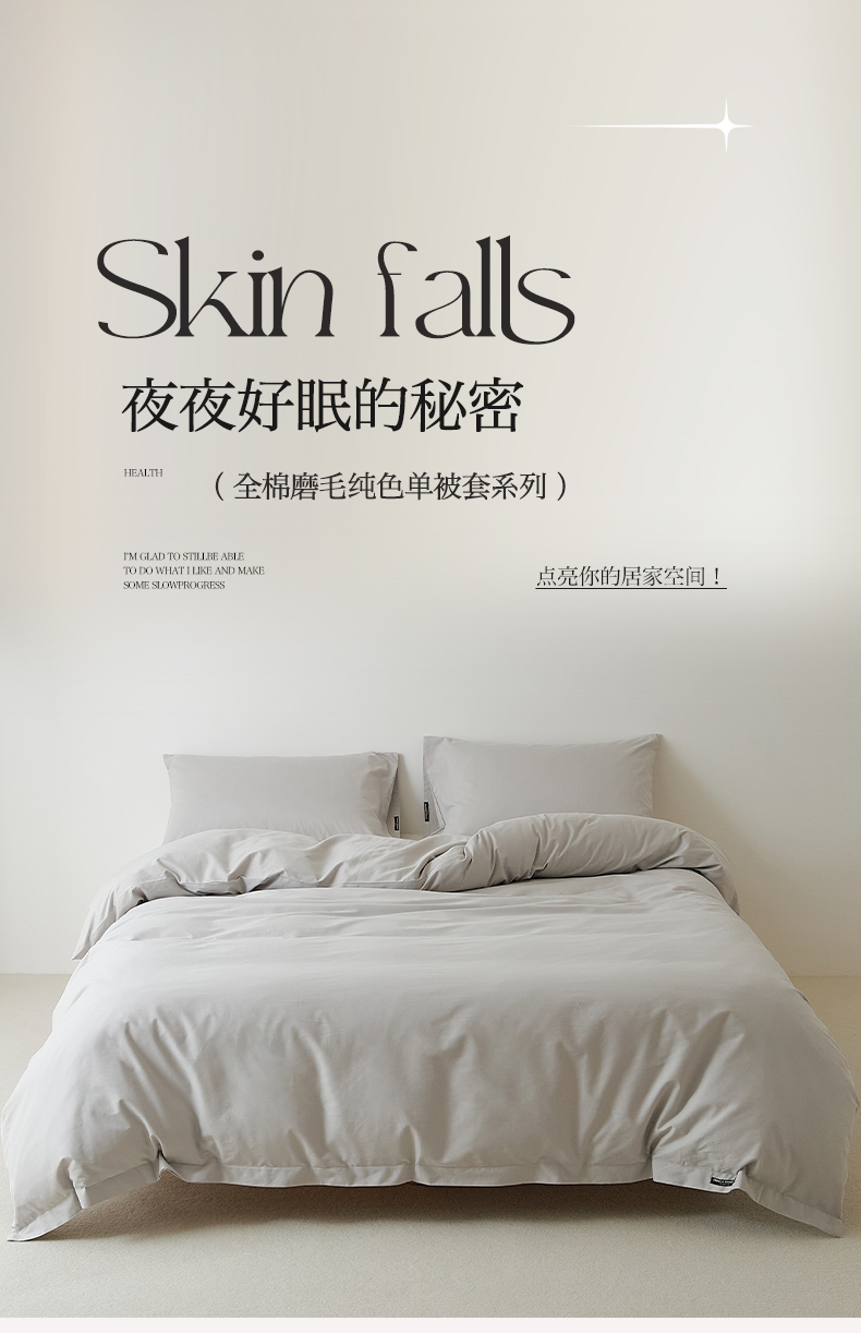 商品名称:EH家居 2025新款全棉磨毛纯色单被套-云栖系列 云栖-云灰色