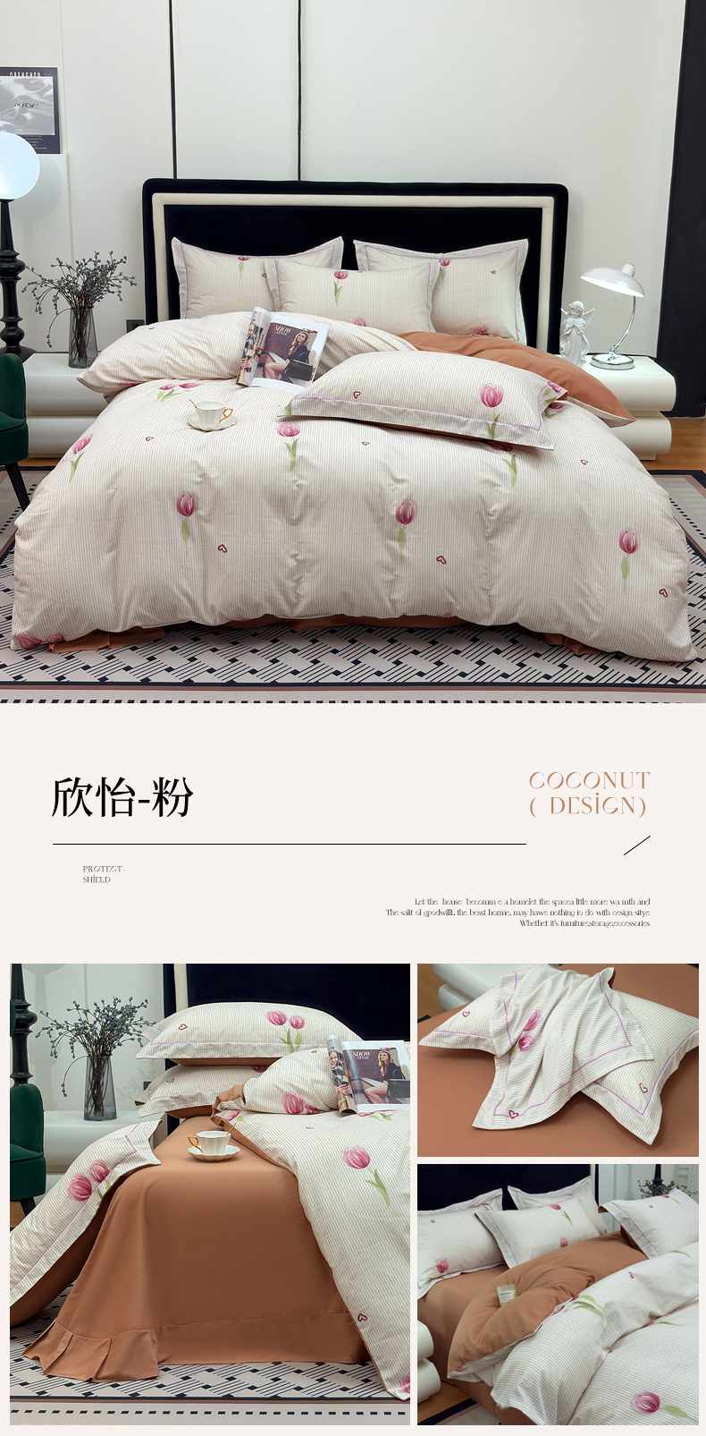 当前位置: 91家纺网 > 商品网购 > 床品套件 > 四件套 > 全棉普通四件套 > 未来家居 2025新款焕新南疆秋冬全棉加厚磨毛纯色印花四件套 欣怡-粉