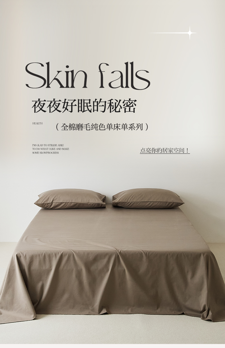 EH家居 2025新款全棉磨毛纯色单床单-云栖系列 高级咖
