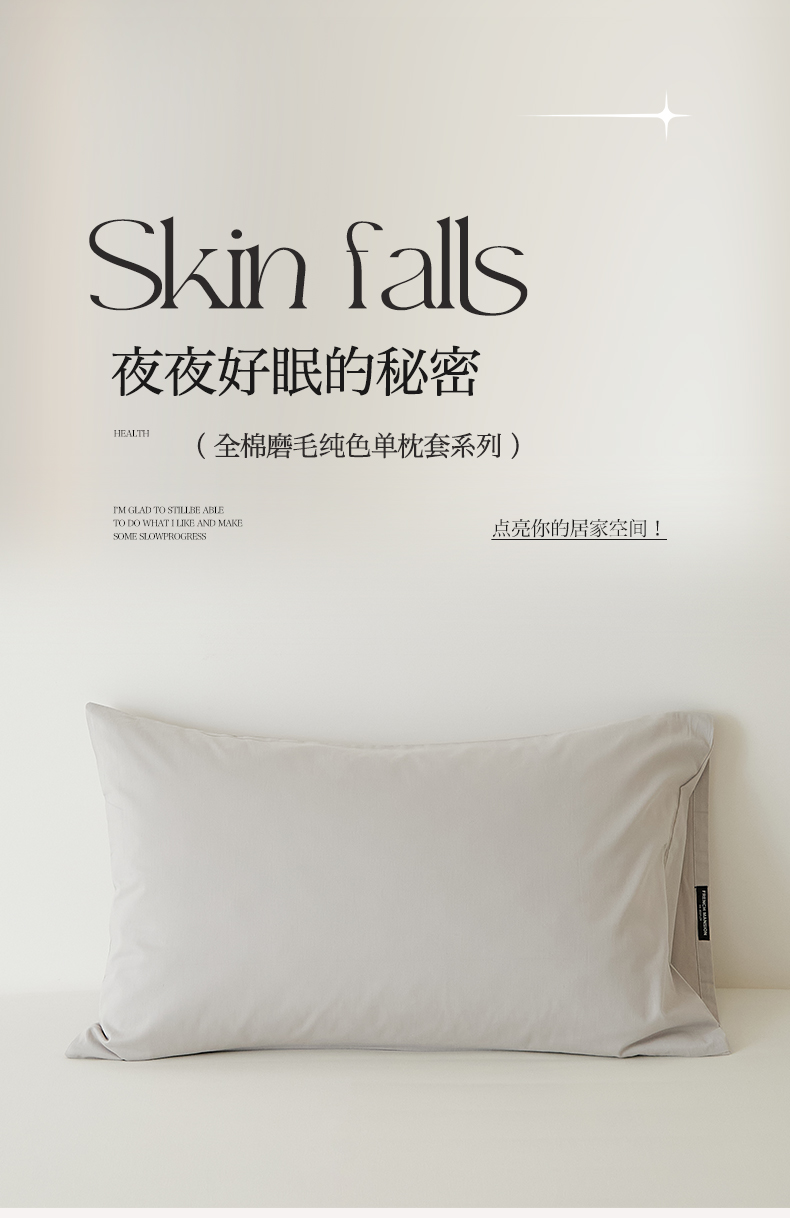商品名称:EH家居 2025新款全棉磨毛纯色单枕套-云栖系列 云栖-云灰色