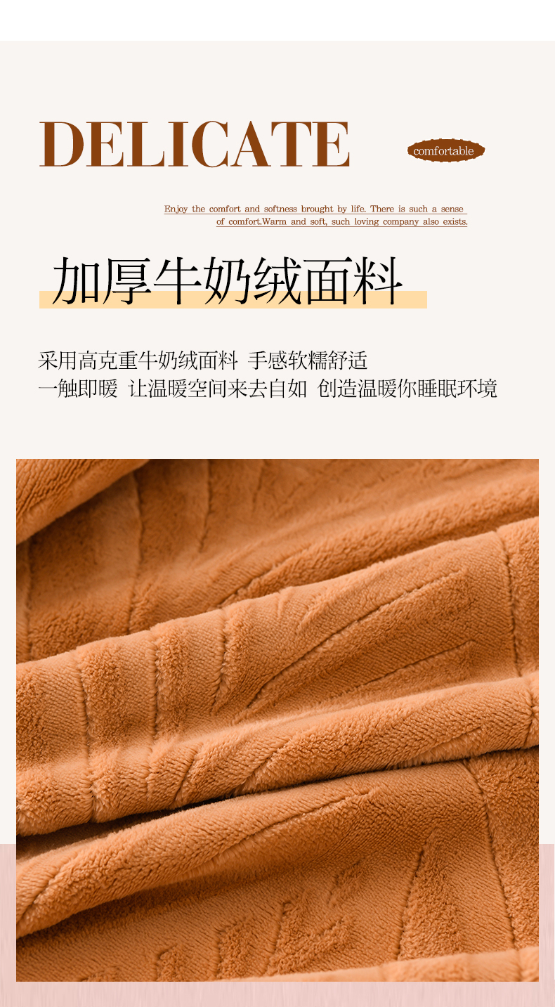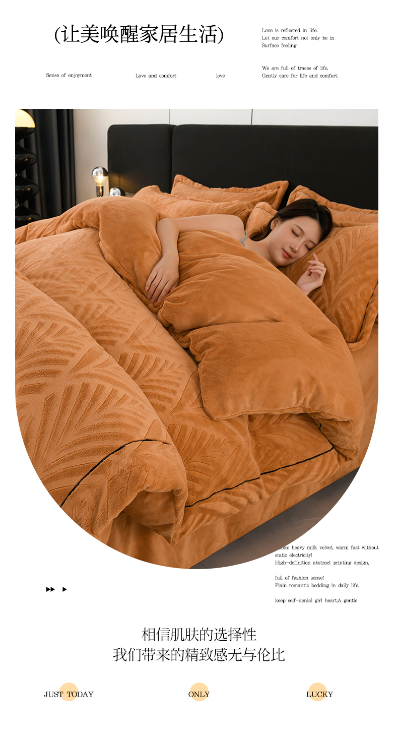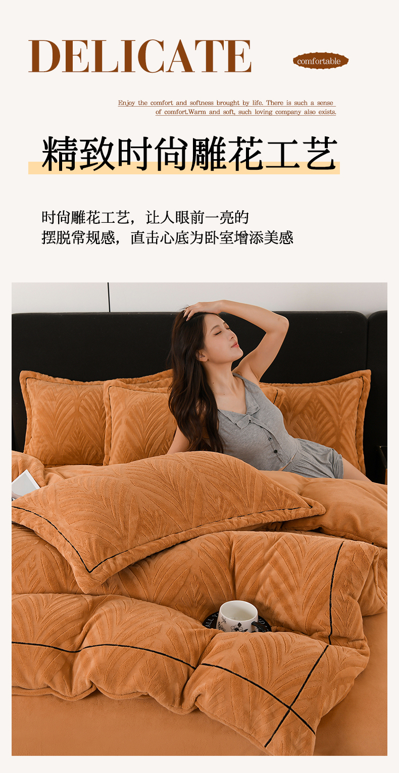 商品名称:紫月轩家纺 2025新款牛奶绒雕花四件套香槟-卡其