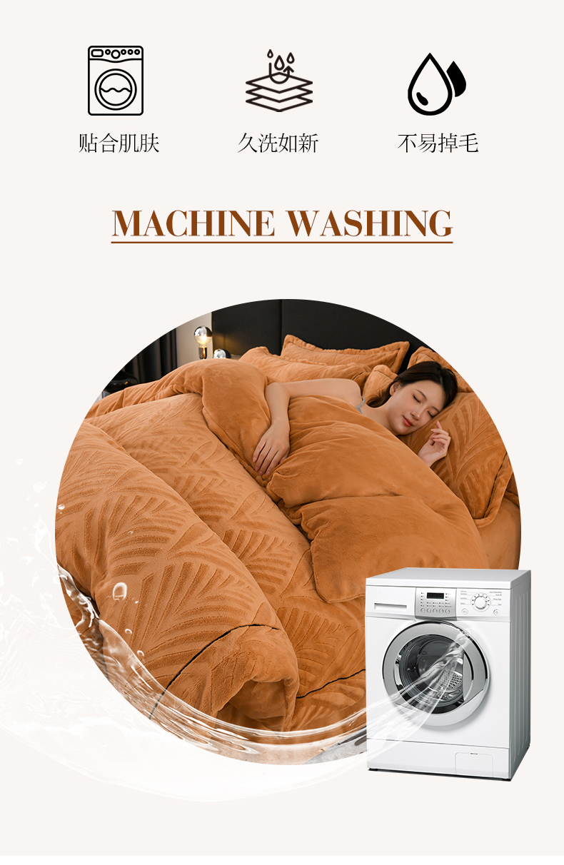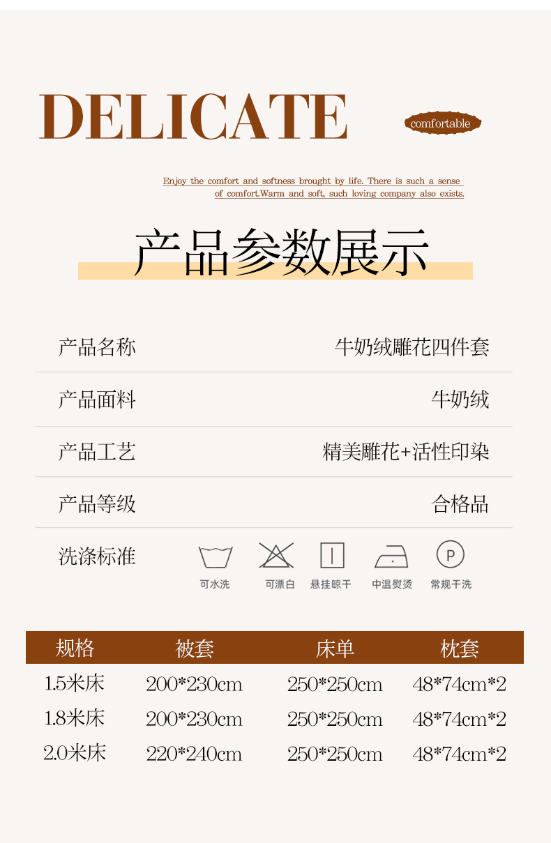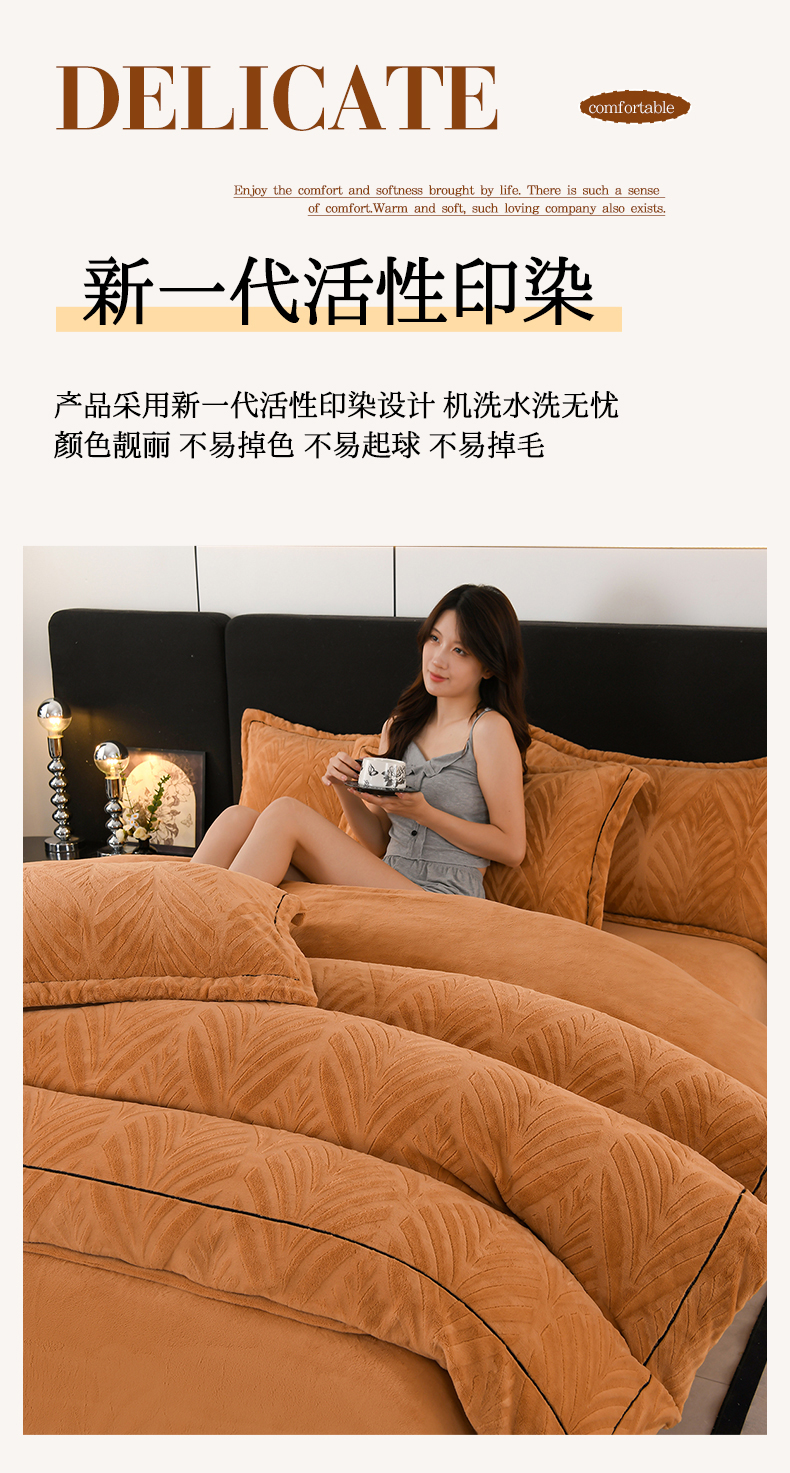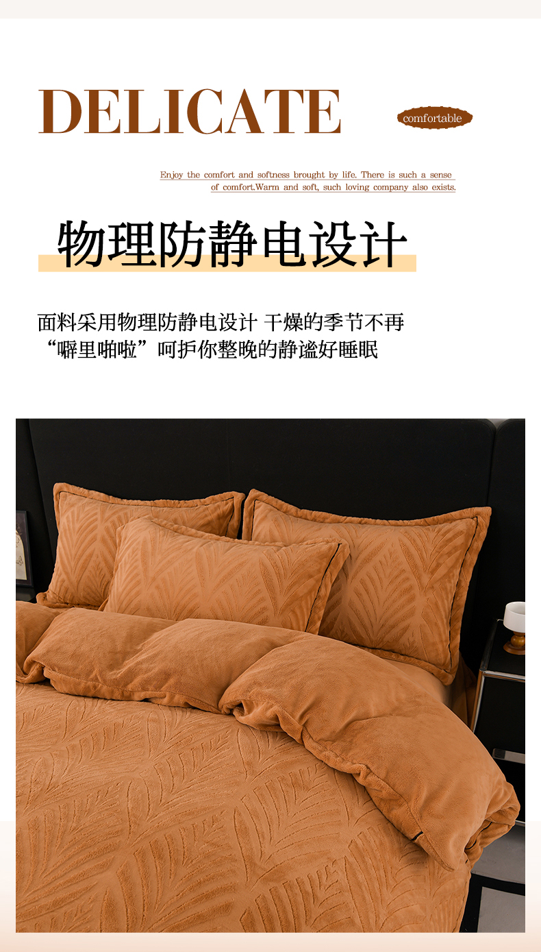 商品名称:紫月轩家纺 2025新款牛奶绒雕花四件套香槟-卡其