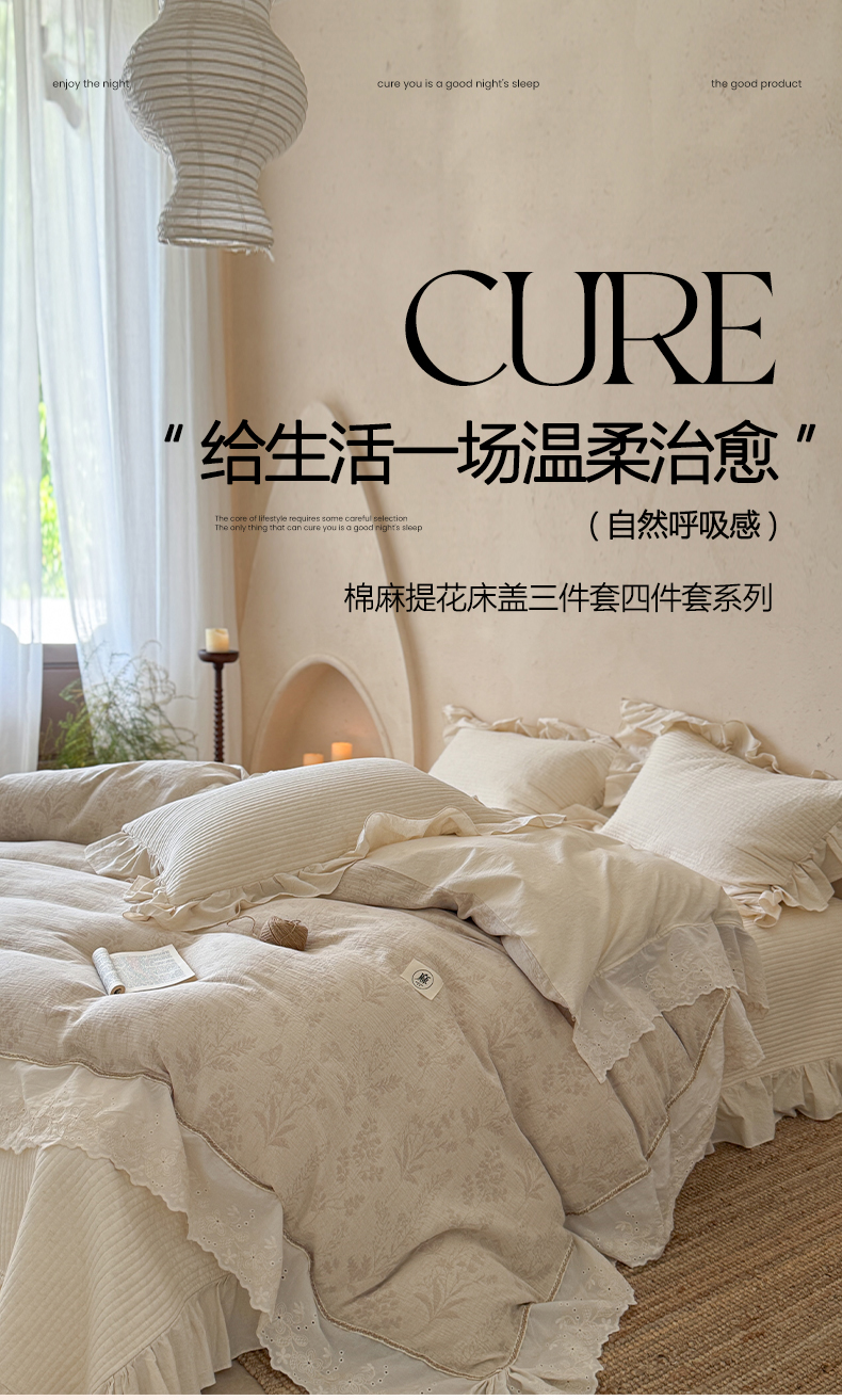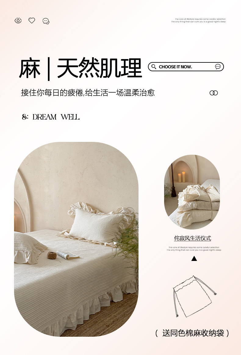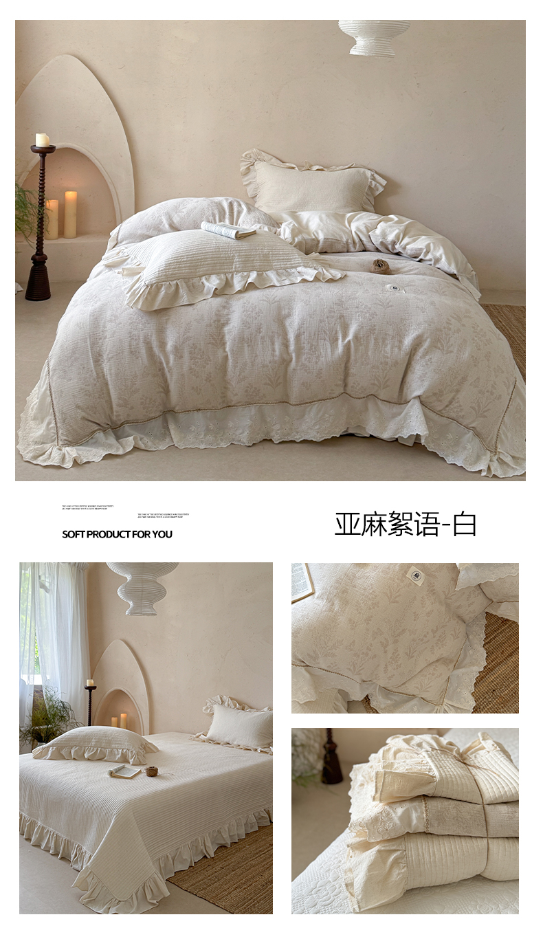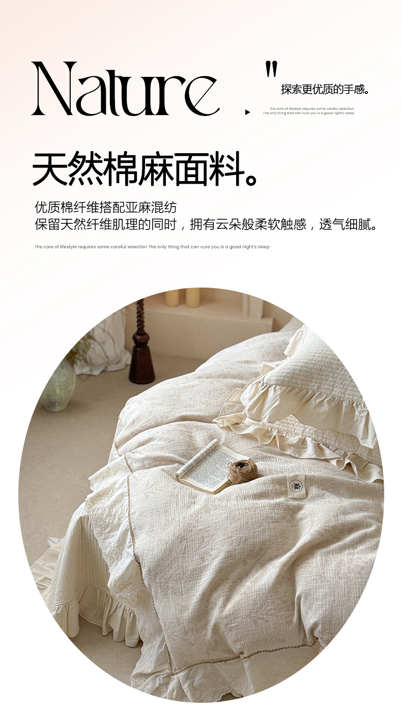 当前位置: 91家纺网 > 商品网购 > 床品套件 > 四件套 > 全棉普通四件套 > (总)漫调家纺 2025新款棉麻提花床盖四件套-棉麻絮语