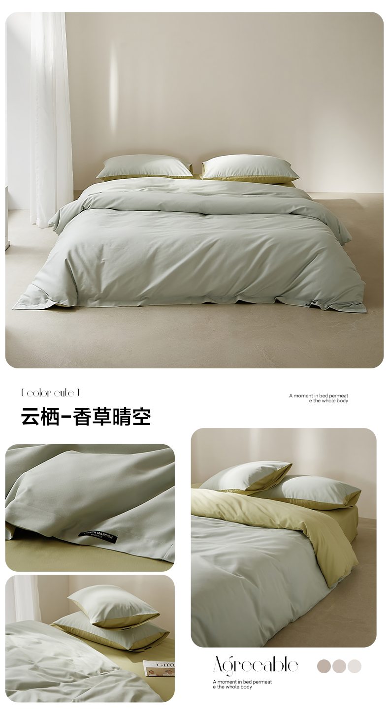 (总)EH家居 2026春夏新品天丝拼角四件套-南山系列,南山-沉香灰,南山-橄榄绿,南山-贵气紫,南山-迷人粉,南山-浅驼色,南山-清风白,南山-邂逅白,组合图
