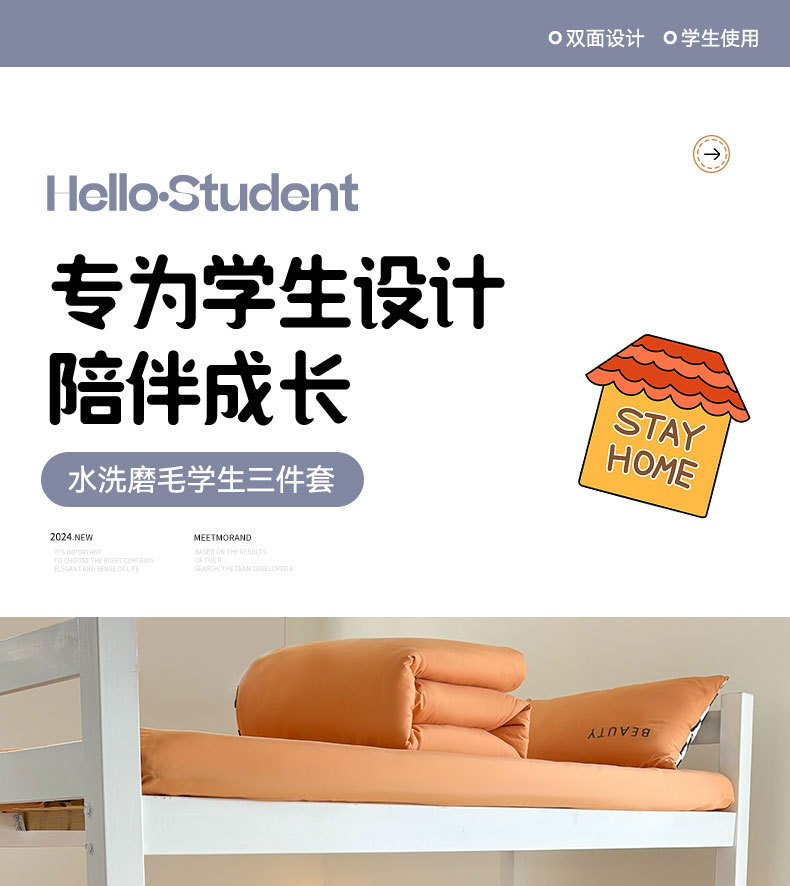 当前位置: 91家纺网 > 商品网购 > 床品套件 > 三件套 > 麦空家居 2025新款 学生季 抗菌水洗棉刺绣学生三件套 - 布丁系列 爱玛橙