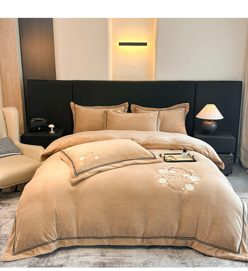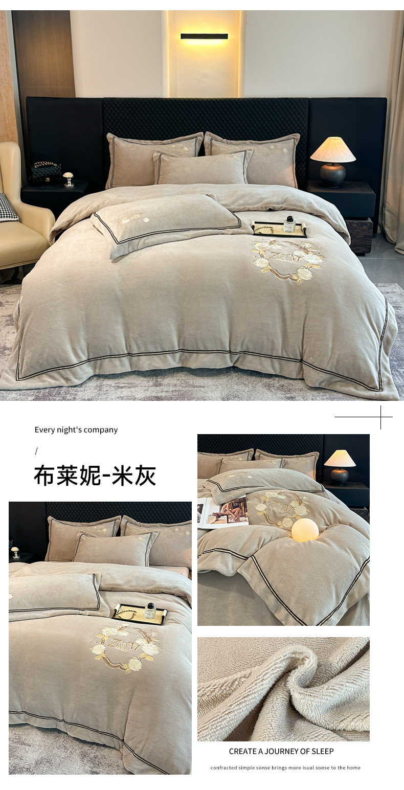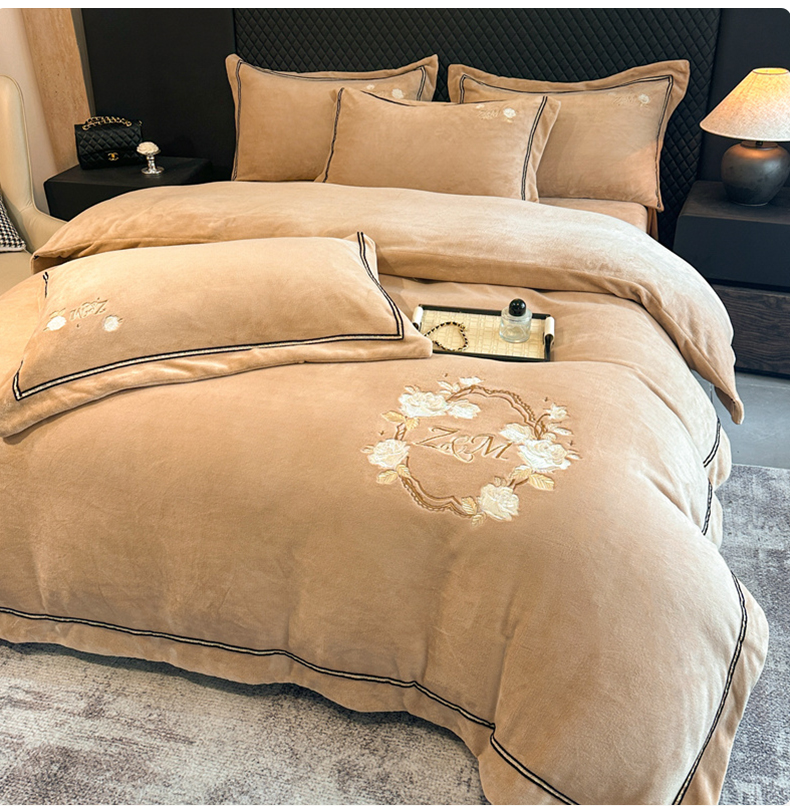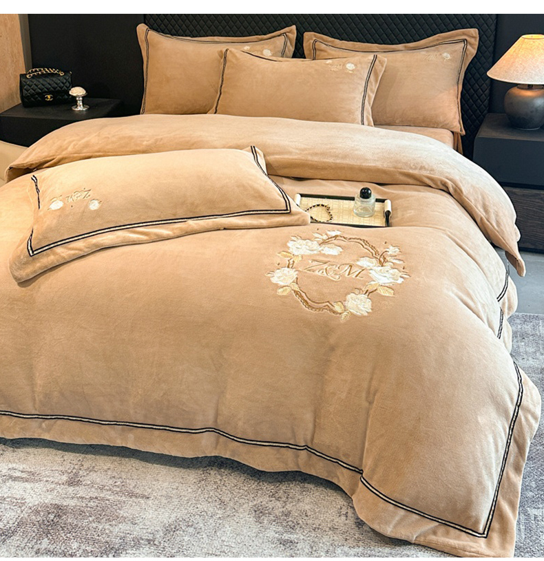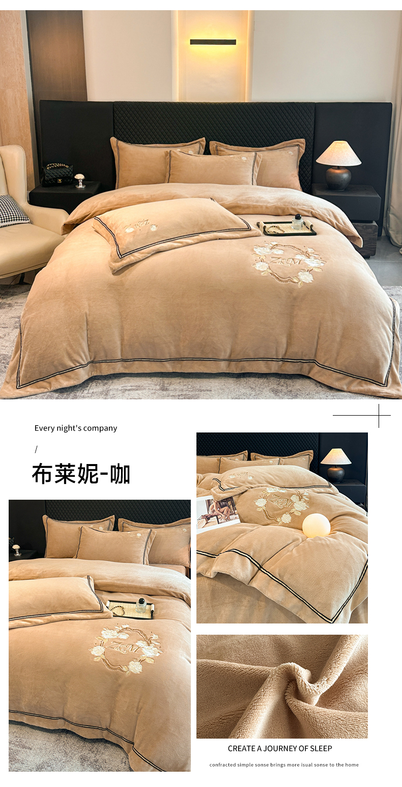 诺梵家纺 2025新款8.2斤牛奶绒刺绣四件套-布莱妮系列 布莱妮-咖