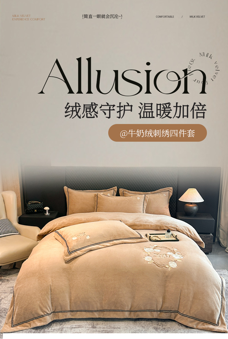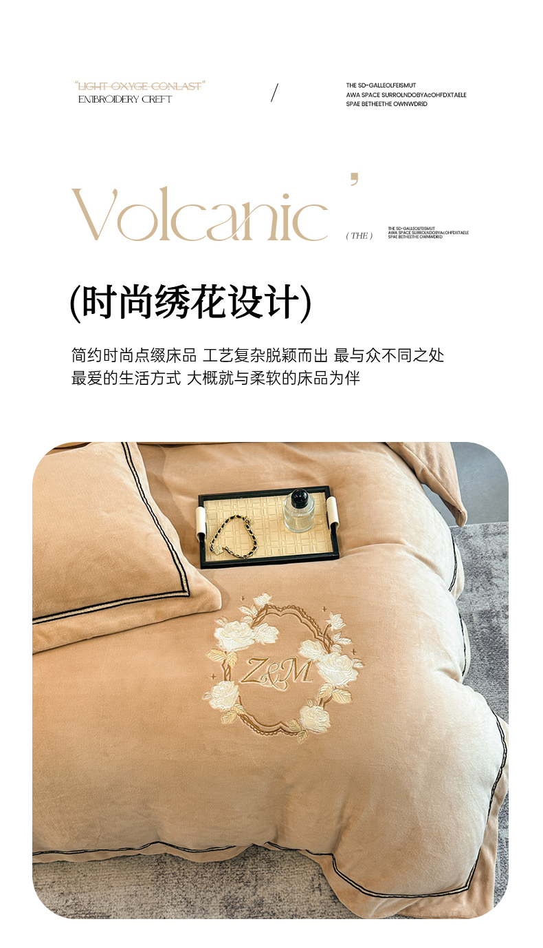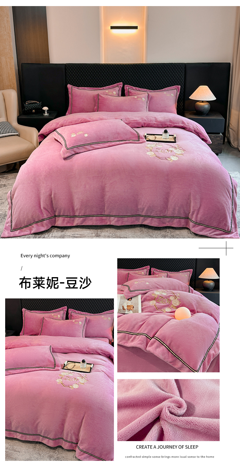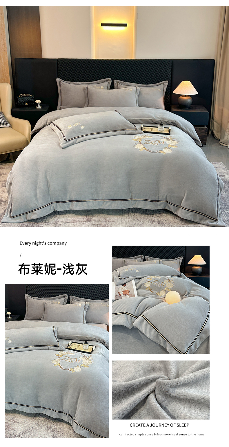 诺梵家纺 2025新款8.2斤牛奶绒刺绣四件套-布莱妮系列 布莱妮-咖
