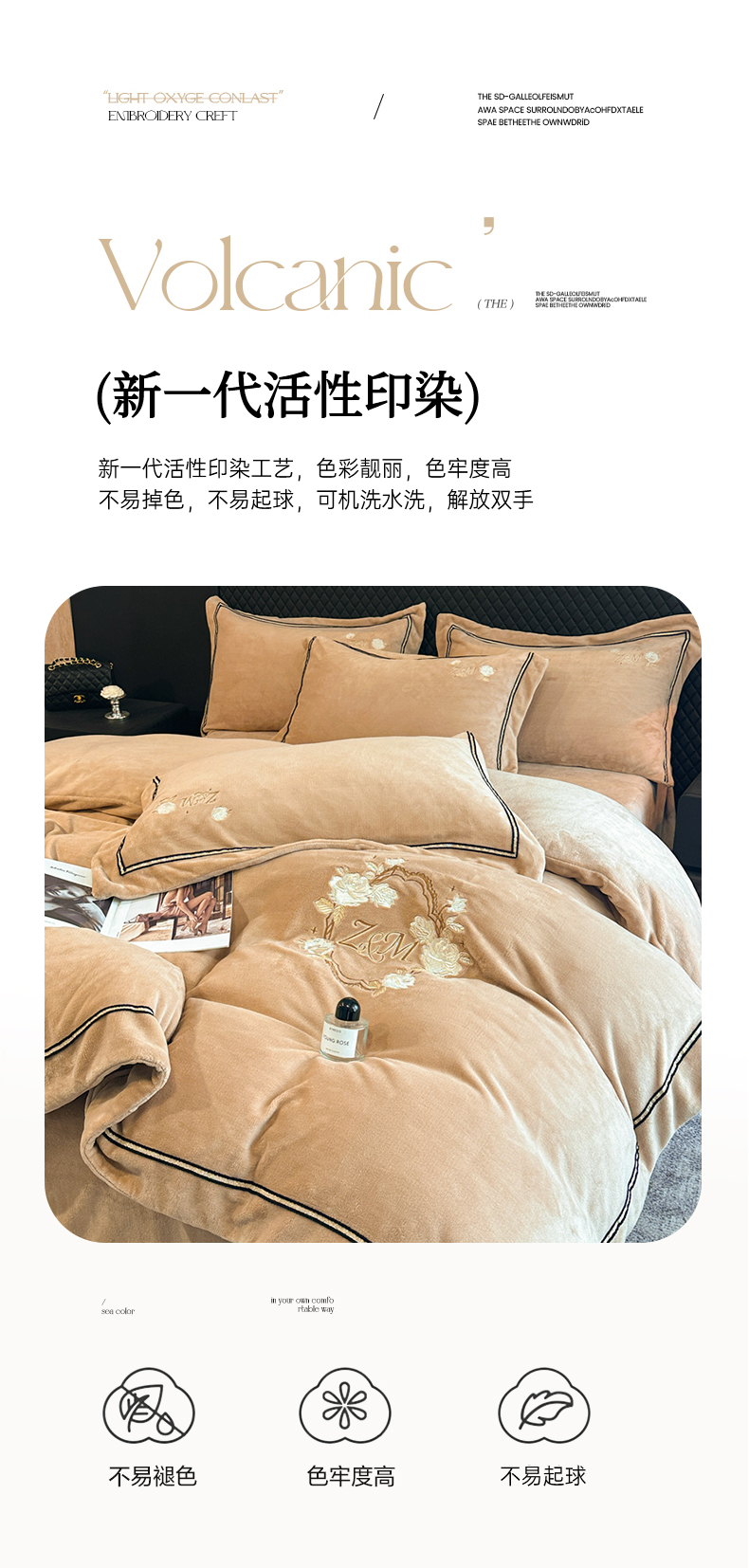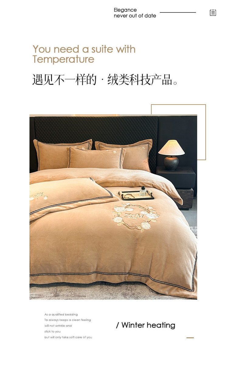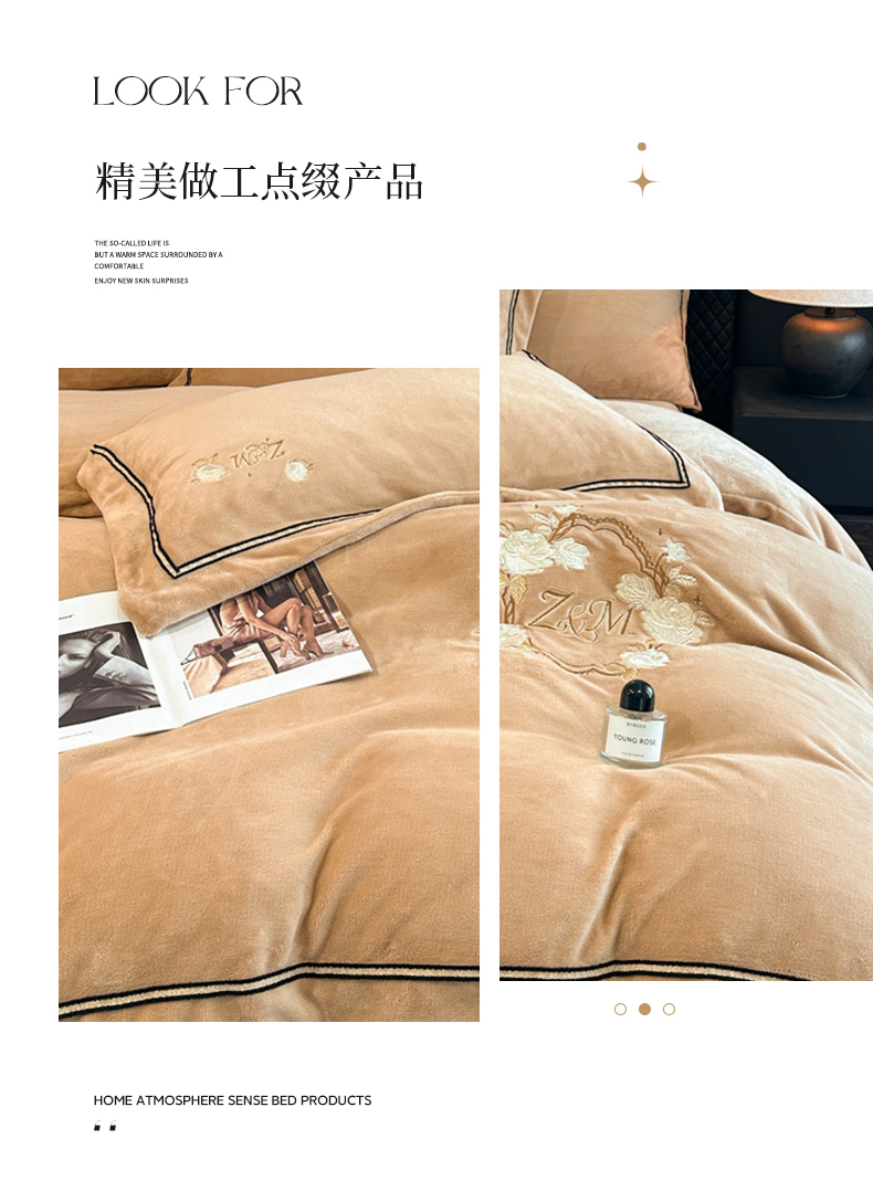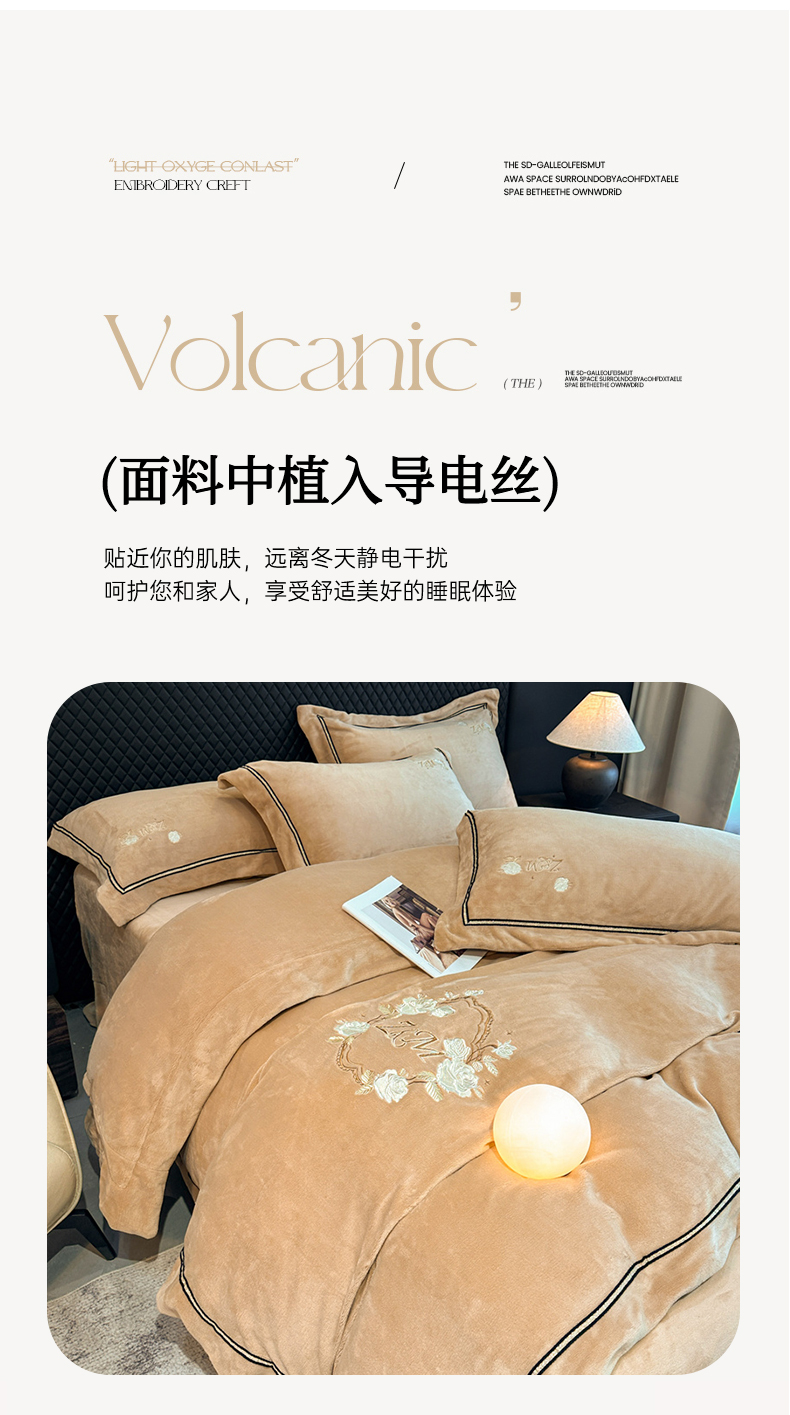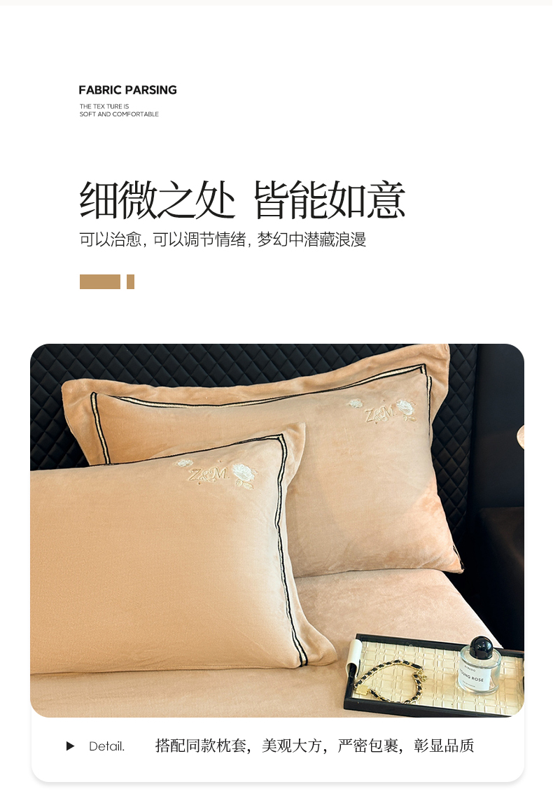 诺梵家纺 2025新款8.2斤牛奶绒刺绣四件套-布莱妮系列 布莱妮-咖