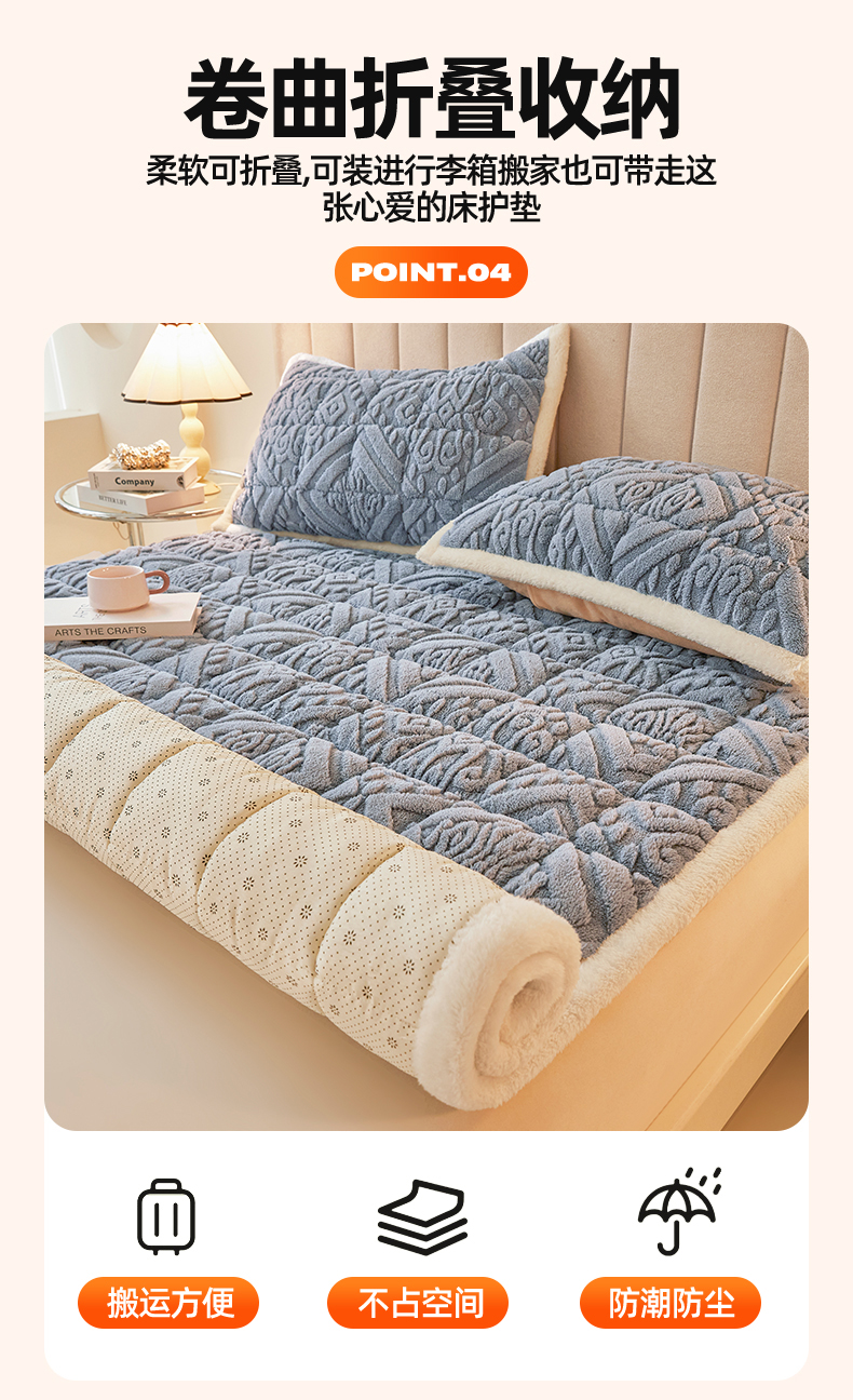 商品名称:(总)雯豆家纺 2025秋冬新款加厚塔芙绒床垫床褥床护垫双人床纯色素色垫子