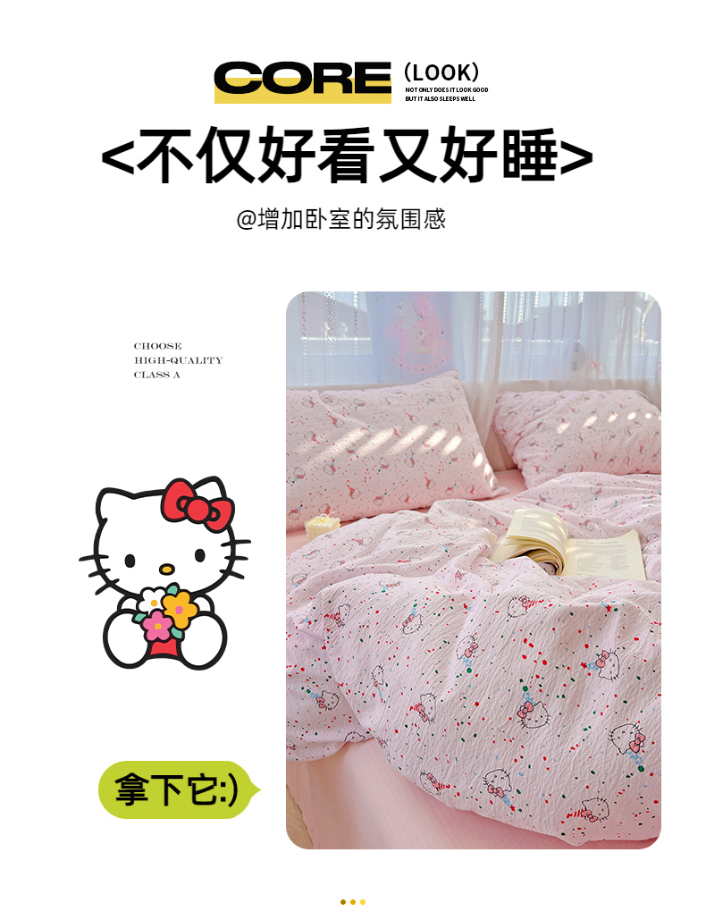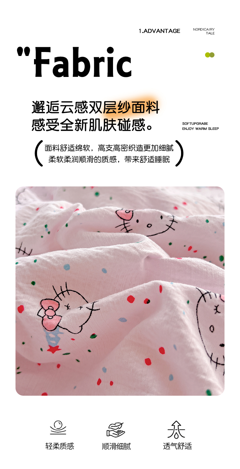 当前位置: 91家纺网 > 商品网购 > 床品套件 > 四件套 > 其它四件套 > 奈颜 2025新款三丽鸥爆款云感双层纱印花四件套学生宿舍三件套-含防伪吊牌-提供买家秀 蛋糕KT猫-浅粉