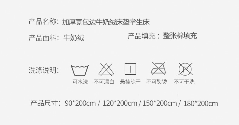 商品名称:索弗莱家纺 2025新款加厚宽边牛奶绒床垫-学生床 马普仕