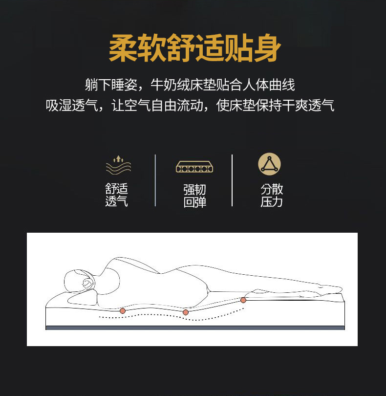 索弗莱家纺 2025新款加厚宽边牛奶绒床垫-学生床 马普仕