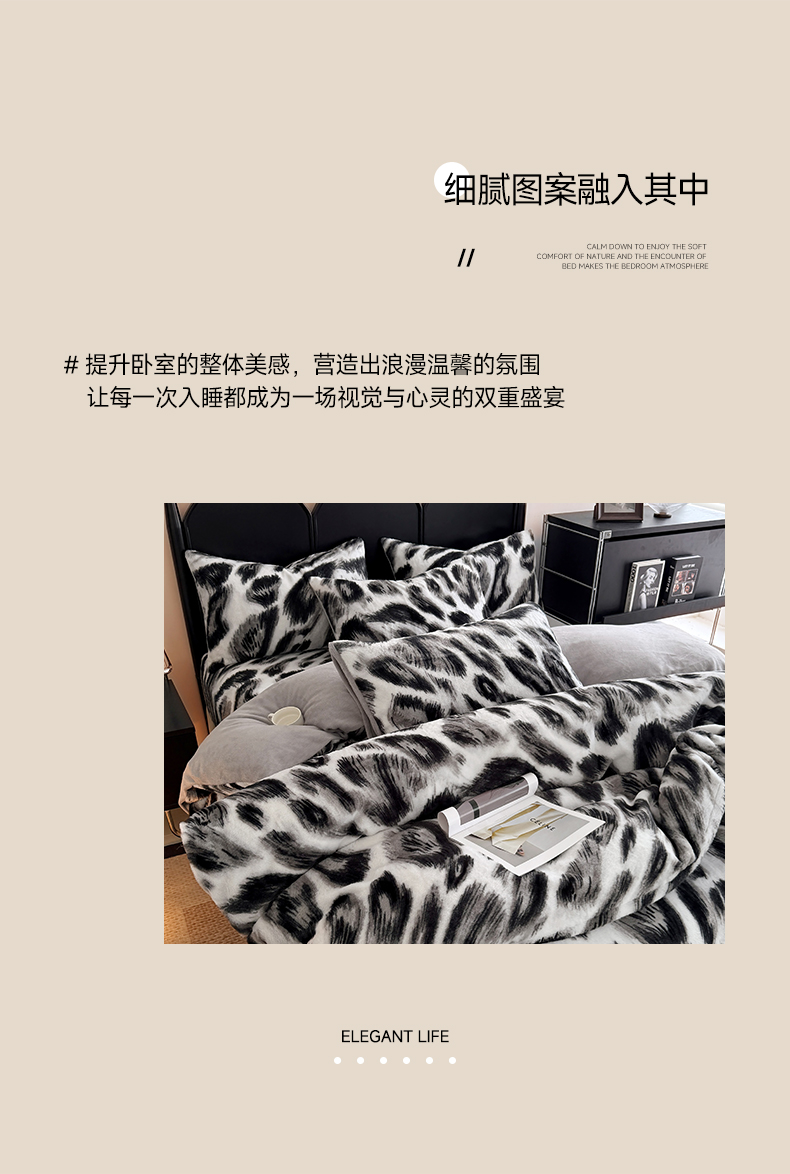 当前位置: 91家纺网 > 商品网购 > 床品套件 > 四件套 > 其它四件套 > 慕梵家居 2025新款亲肤舒适兔绒床笠款四件套 奢豹荣域-灰