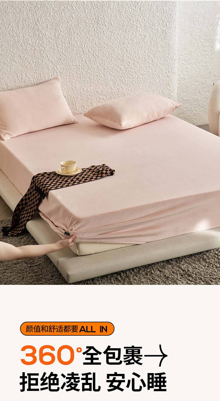千朵森 2025新款全消光牛奶绒床笠单床笠单品床笠单件床笠-芙妮 芙妮-香草粉