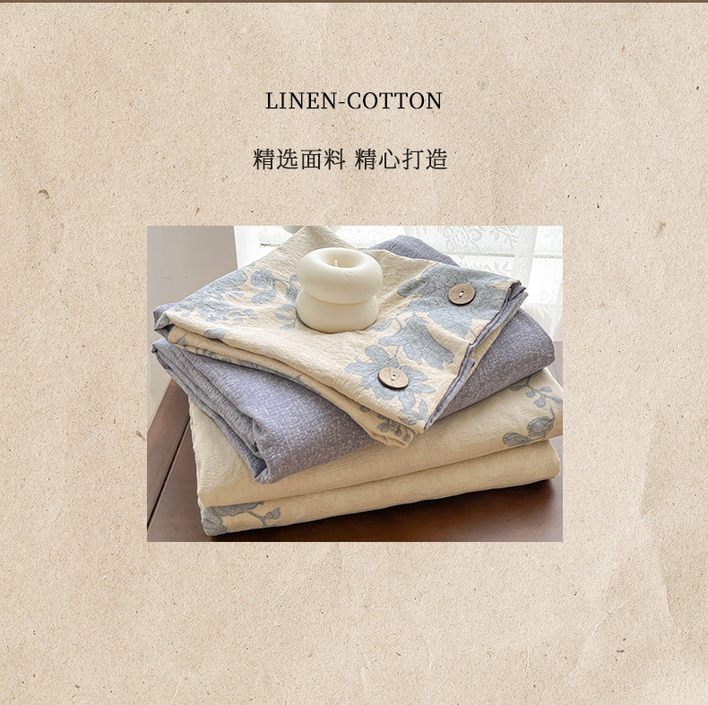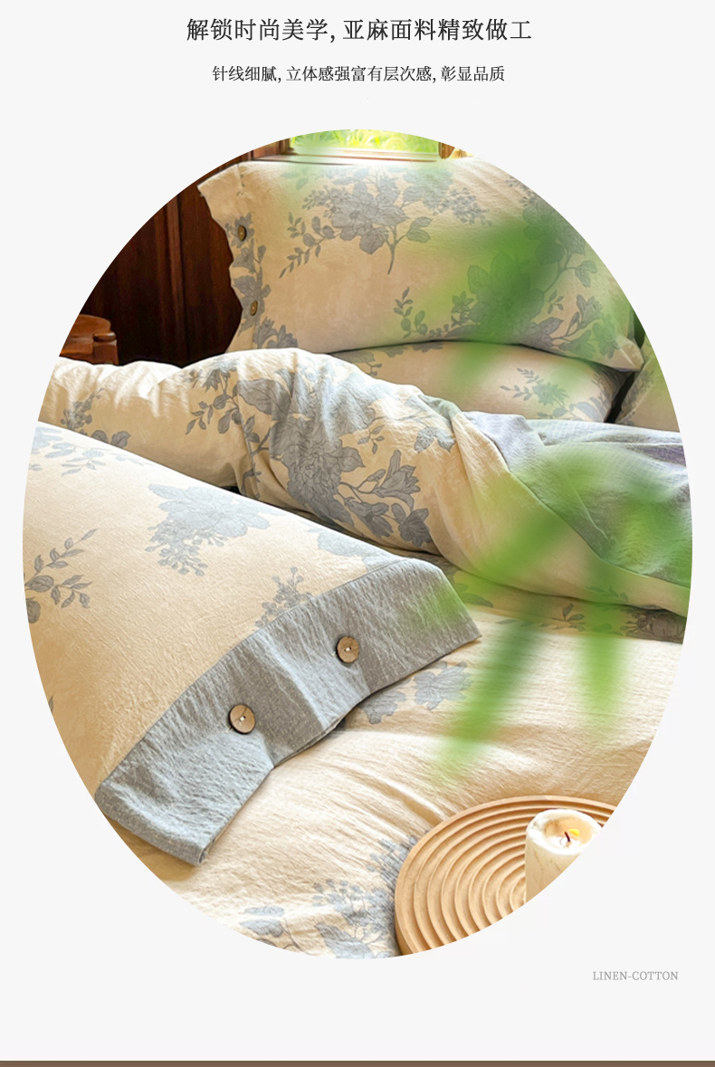 当前位置: 91家纺网 > 商品网购 > 床品套件 > 四件套 > 其它四件套 > 爱彼家纺 2025新款亲肤舒适原麻亚麻水洗棉四件套-纽扣款 组合图