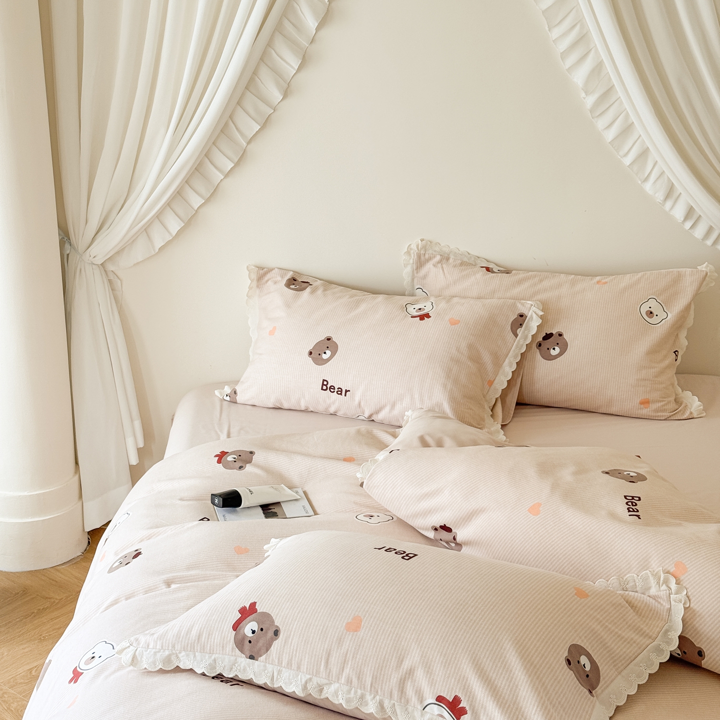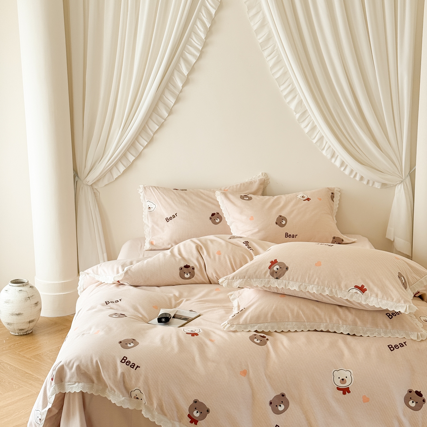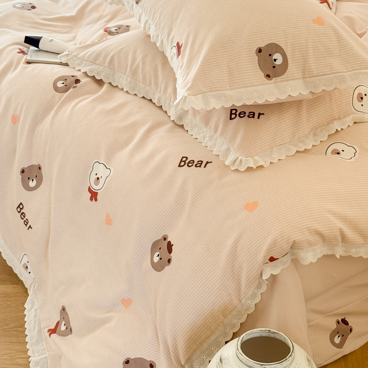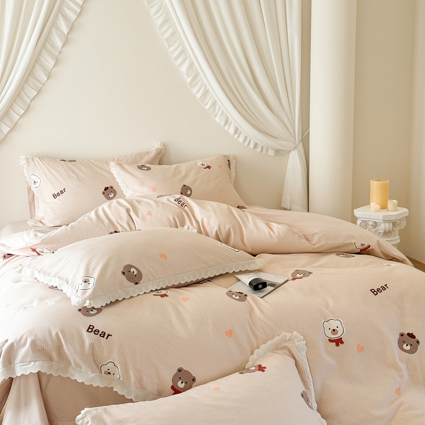于果 2025新款全棉纯棉生态磨毛花边款四件套 告白熊