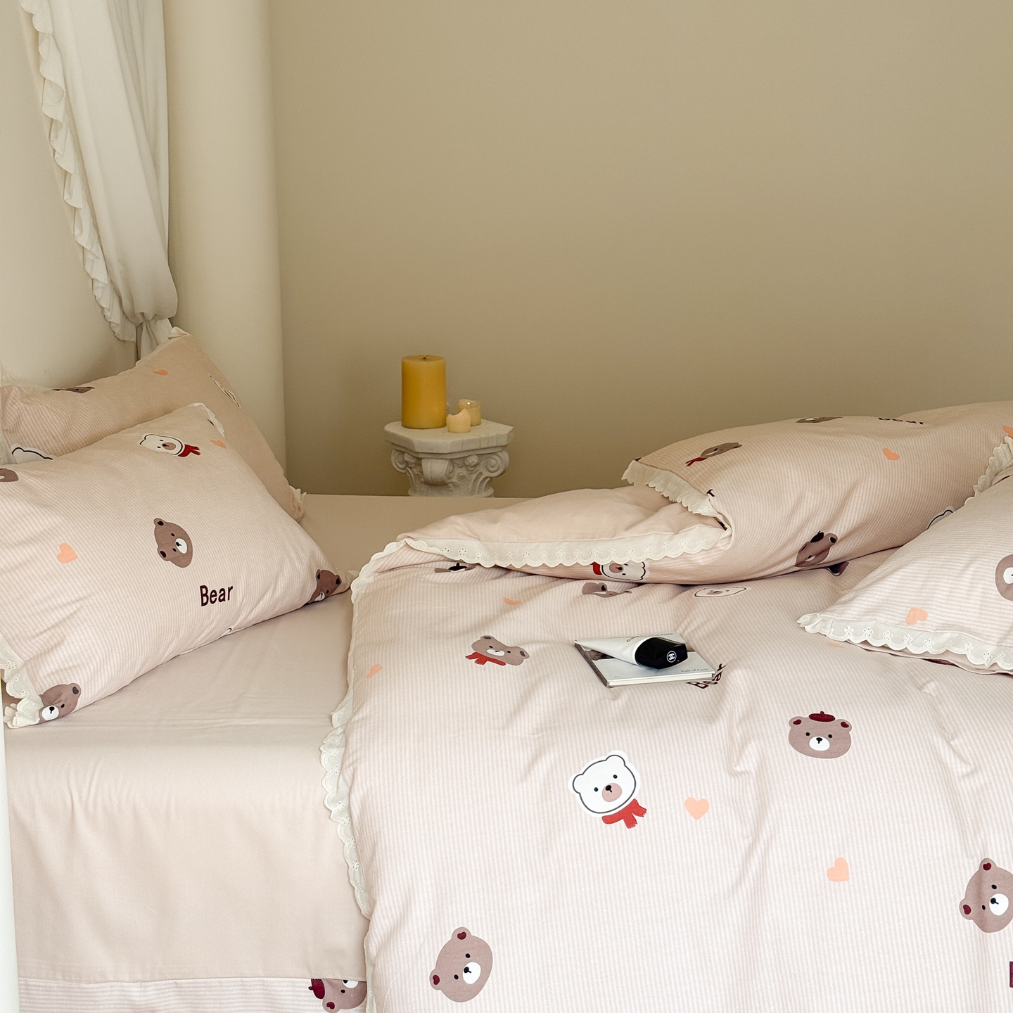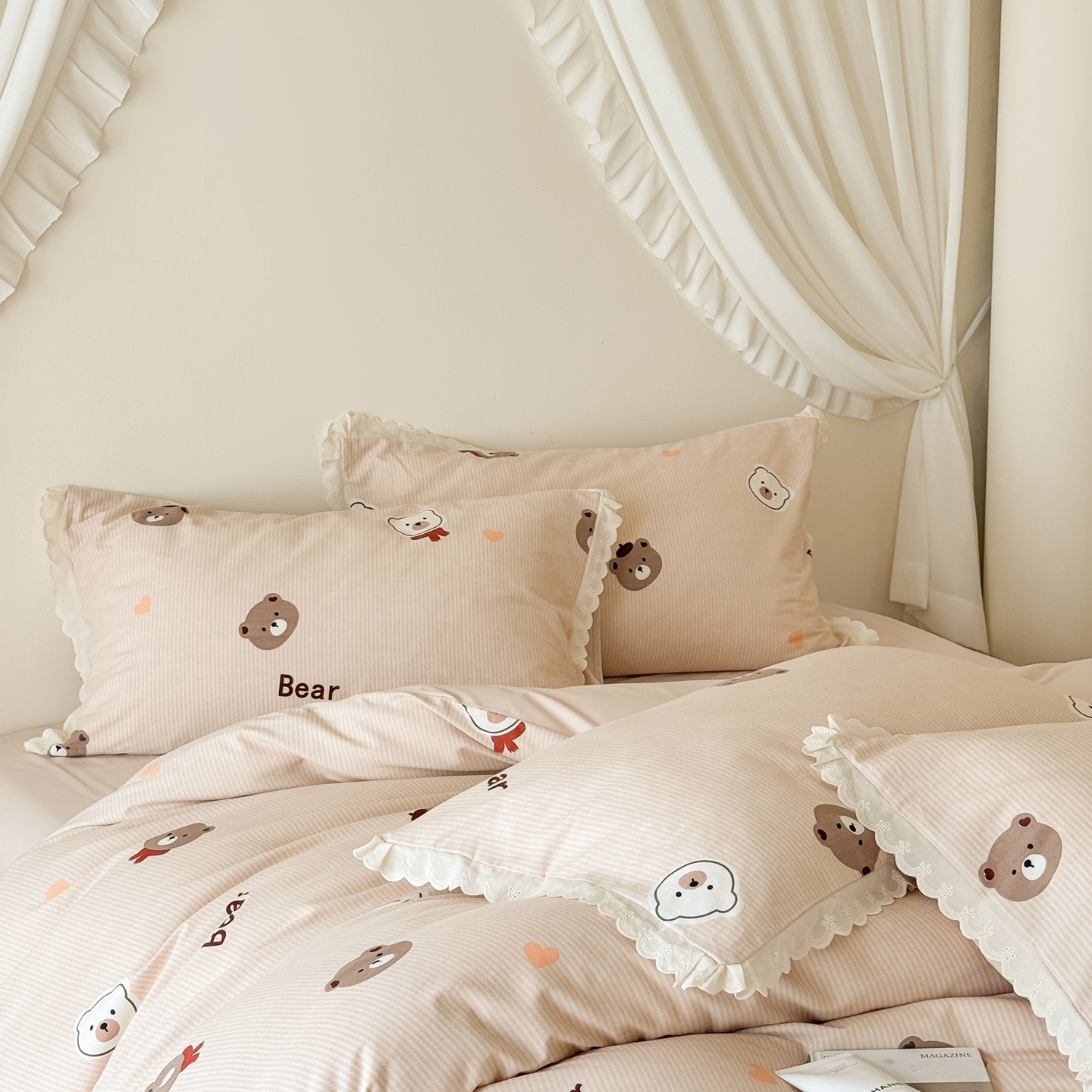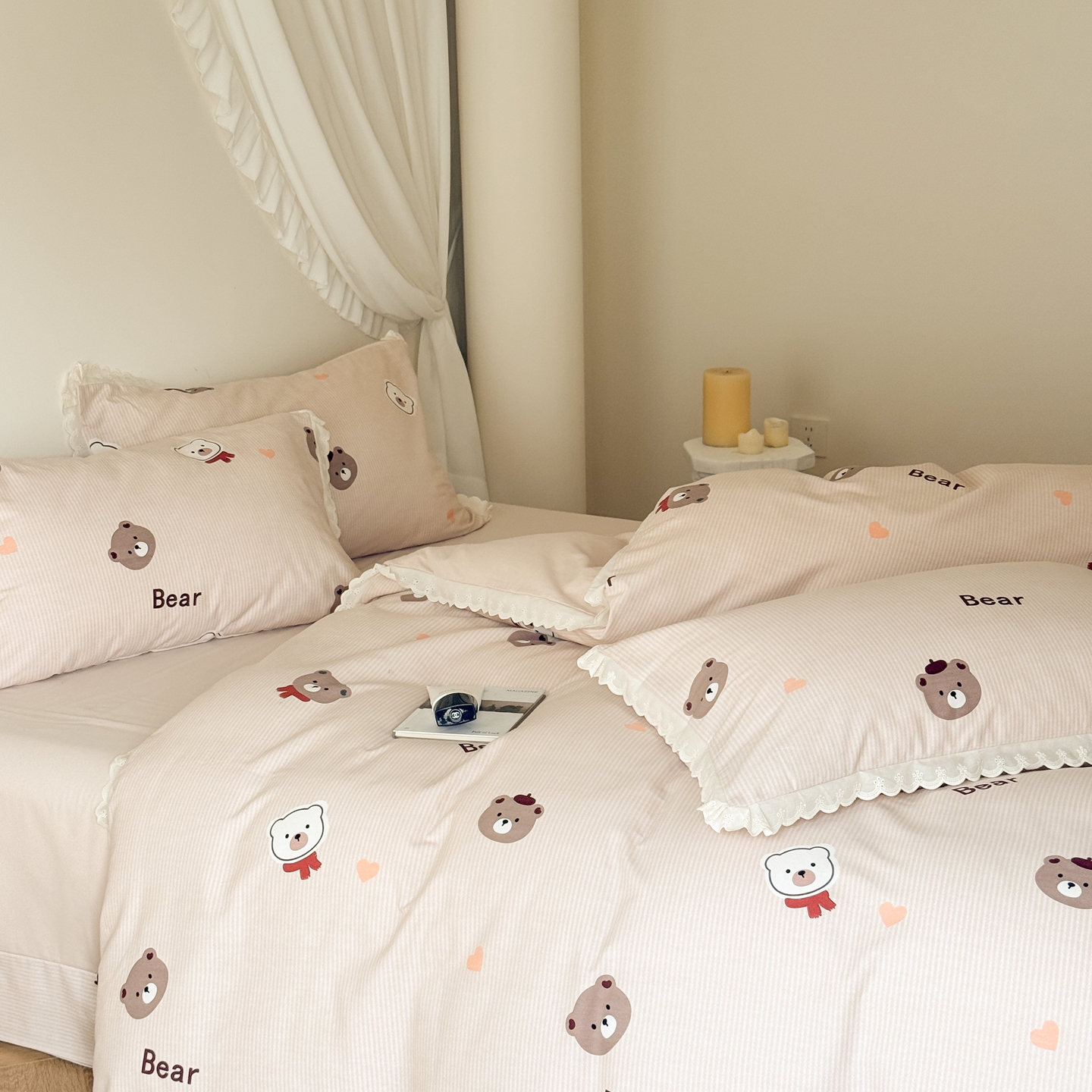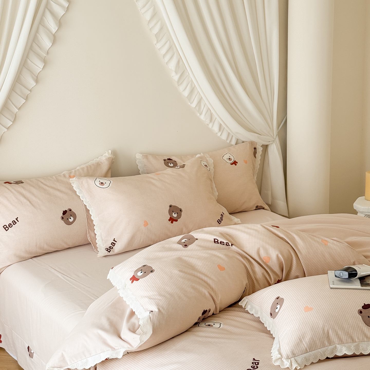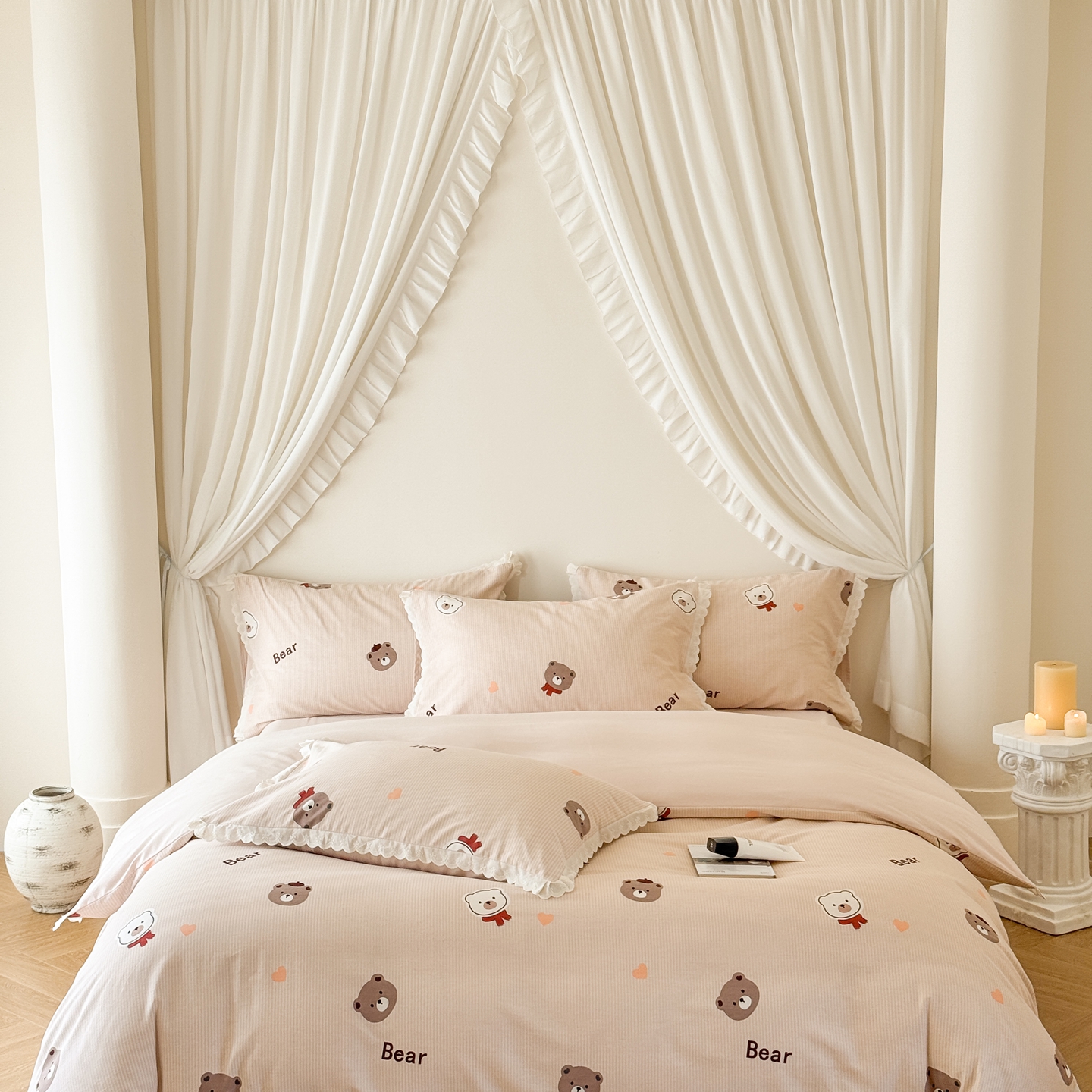 于果 2025新款全棉纯棉生态磨毛花边款四件套 告白熊