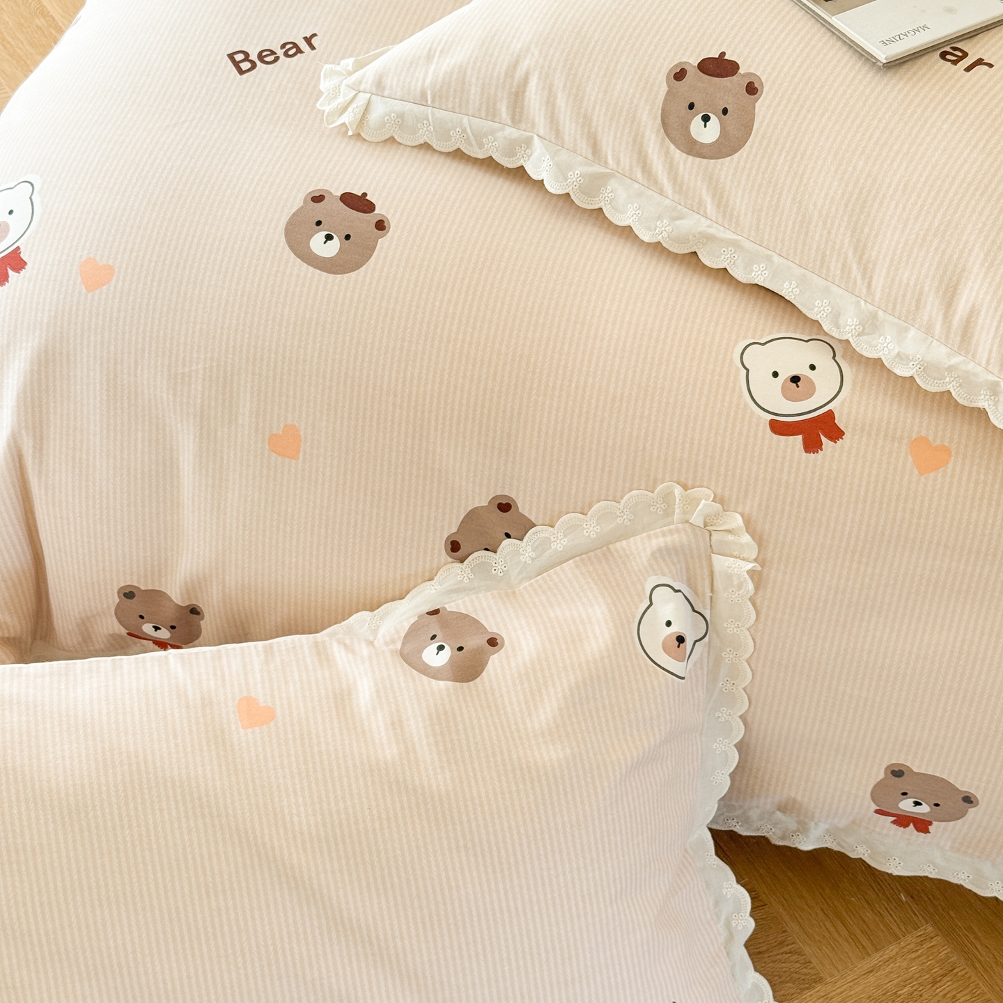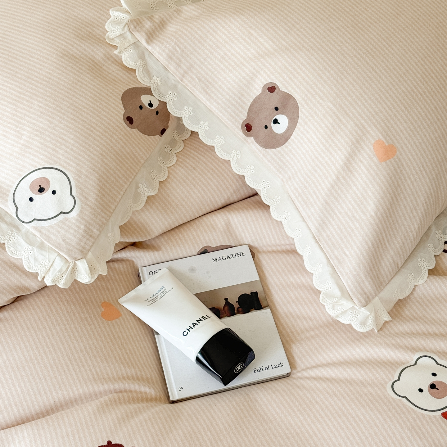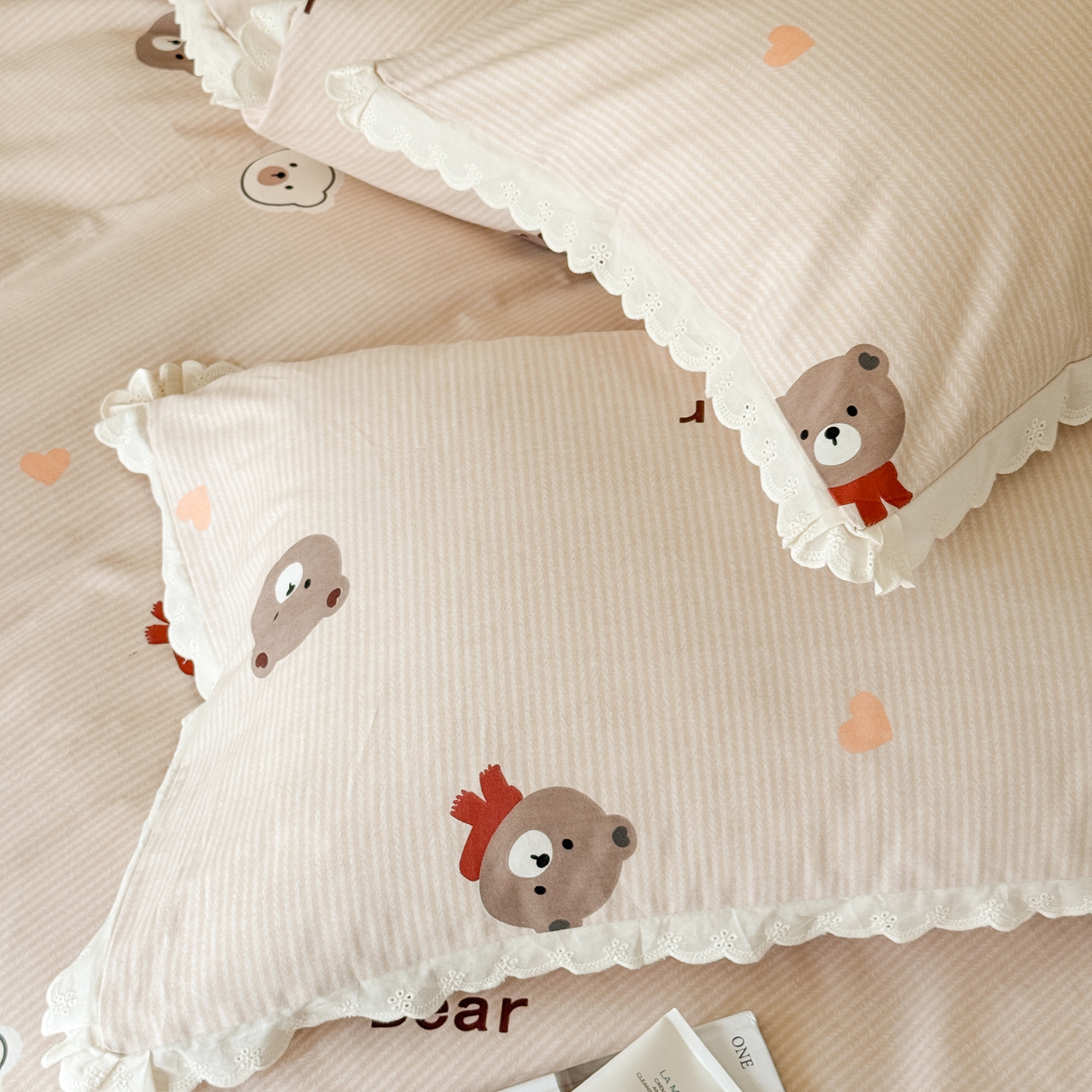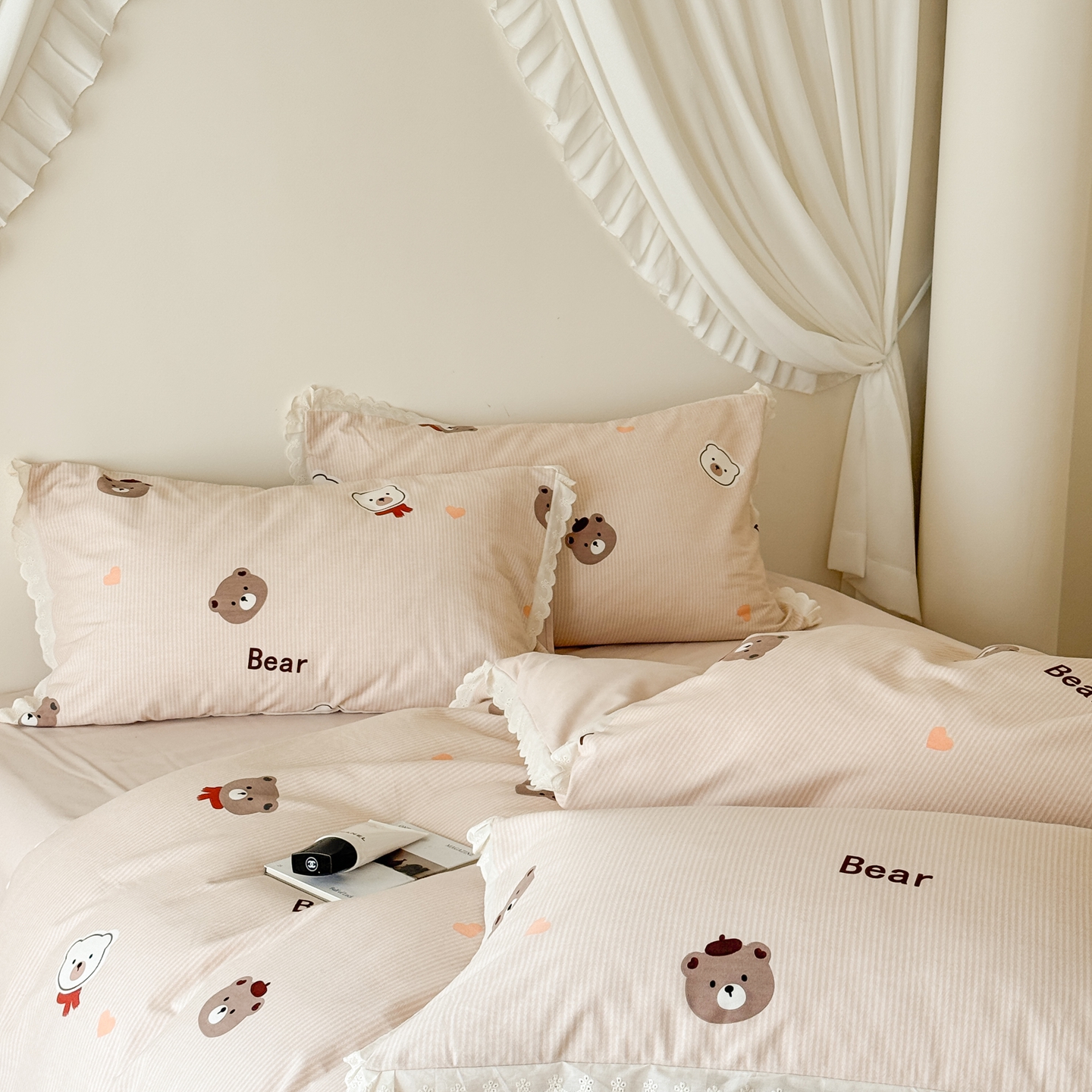 于果 2025新款全棉纯棉生态磨毛花边款四件套 告白熊