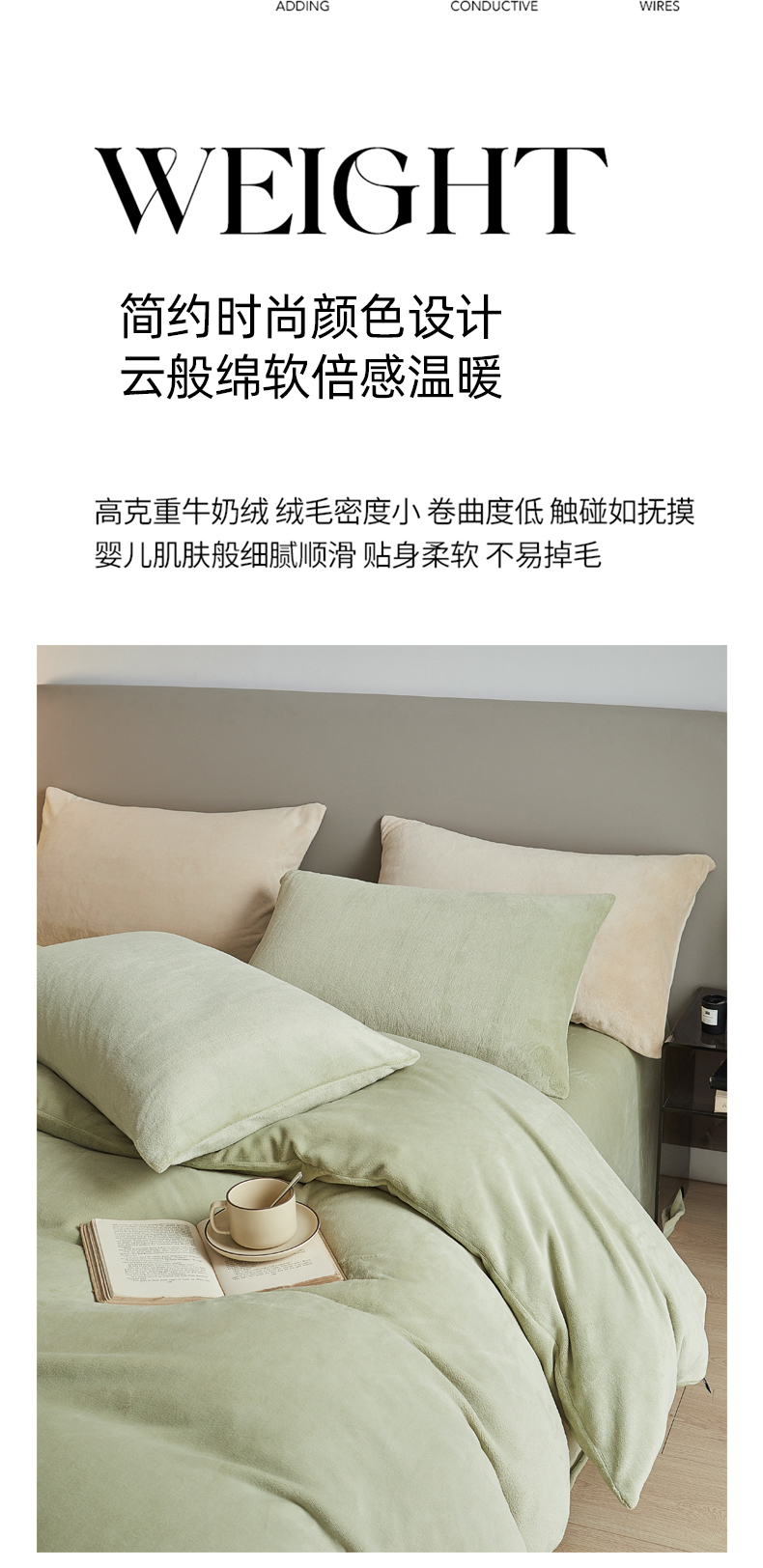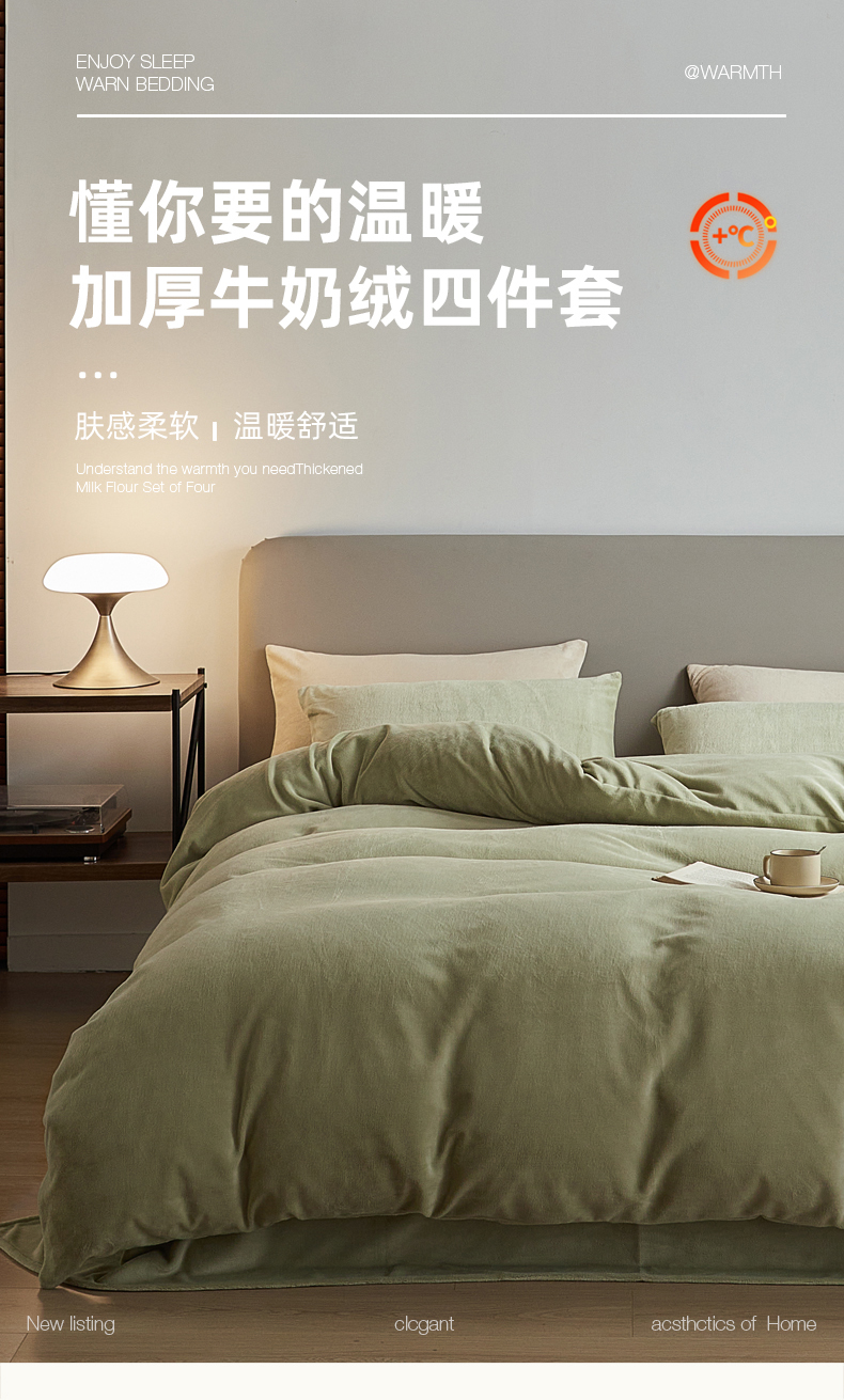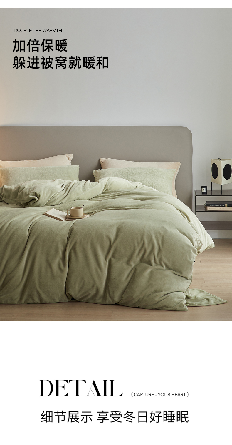 当前位置: 91家纺网 > 商品网购 > 床品套件 > 四件套 > 牛奶绒四件套 > 千朵森 2025新款高克重全消光纯色牛奶绒套件四件套 风格二 绿芙