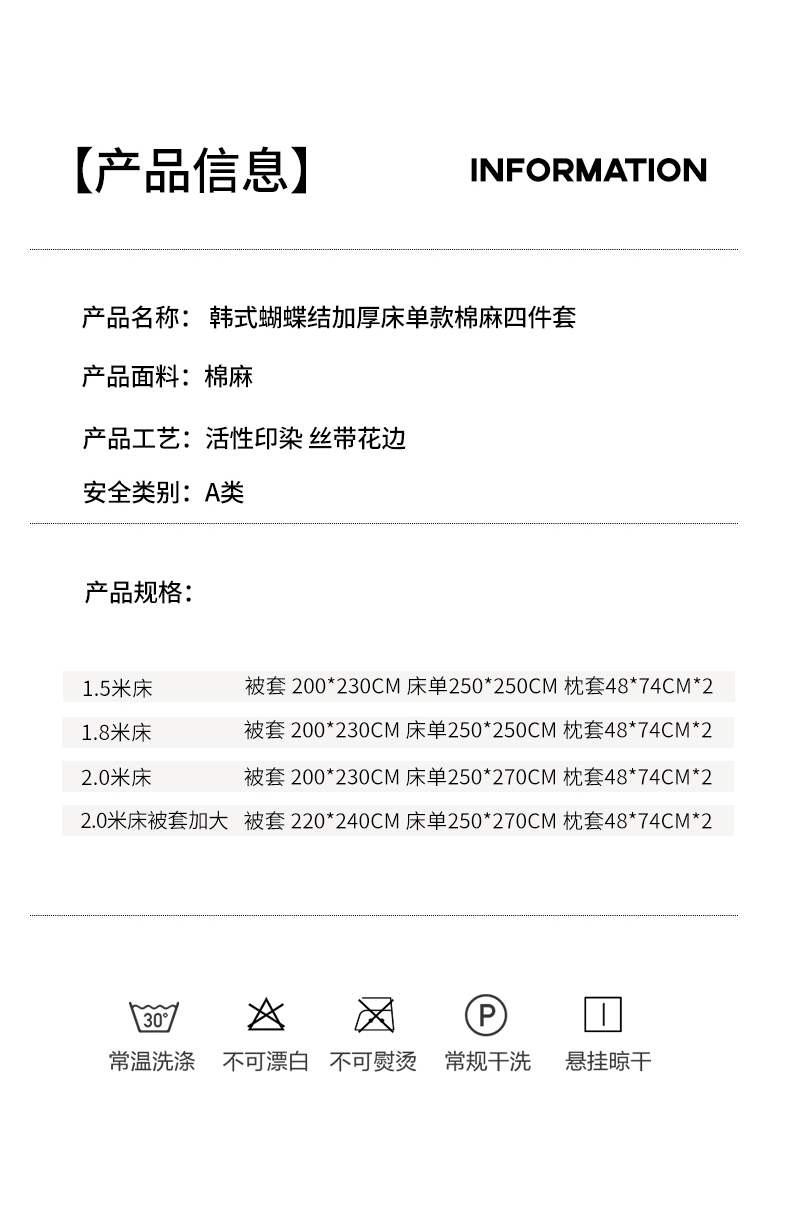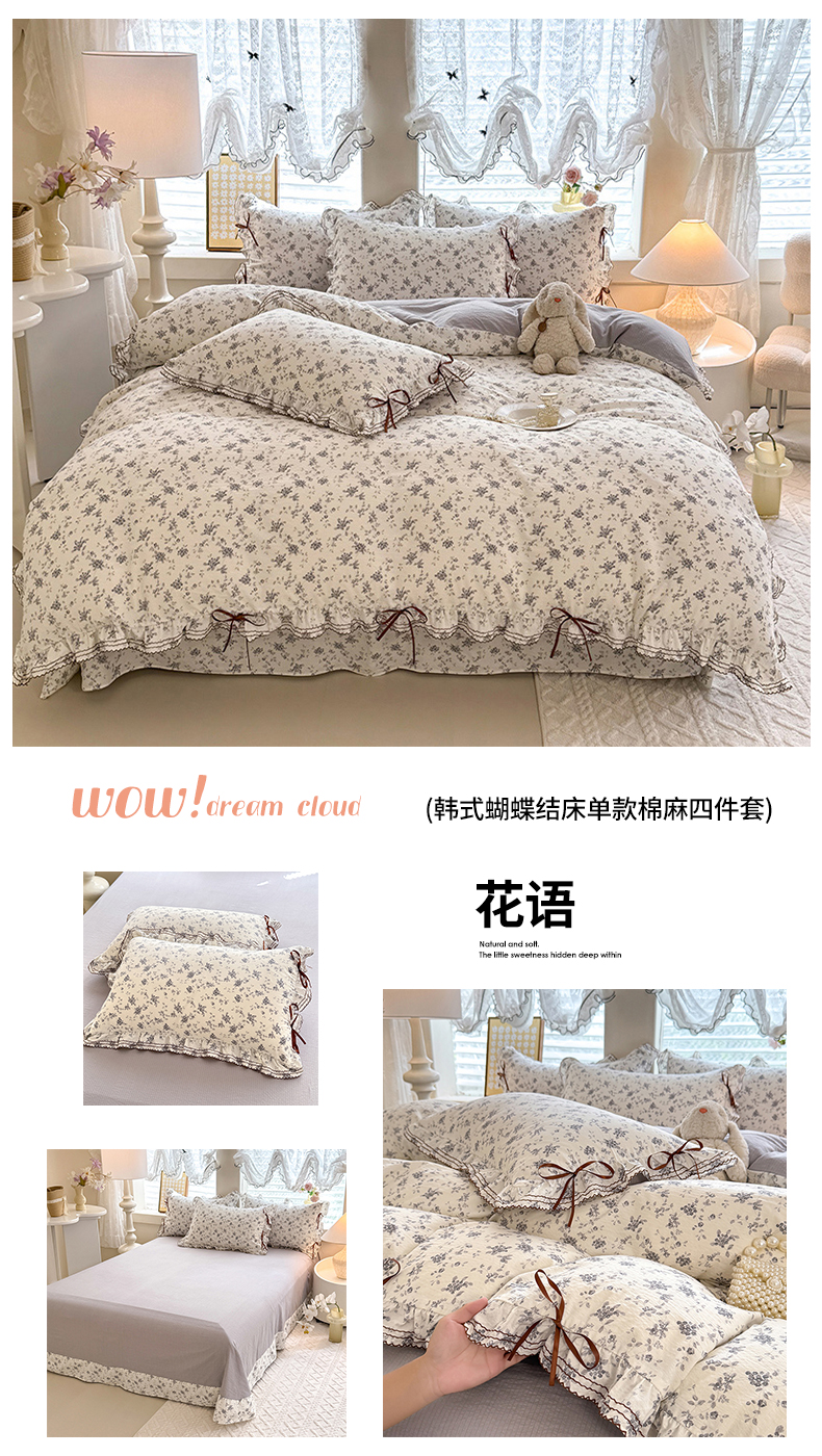 商品名称:韩约家纺 2025新款1韩式蝴蝶结加厚床单款棉麻四件套 熊仔萌萌