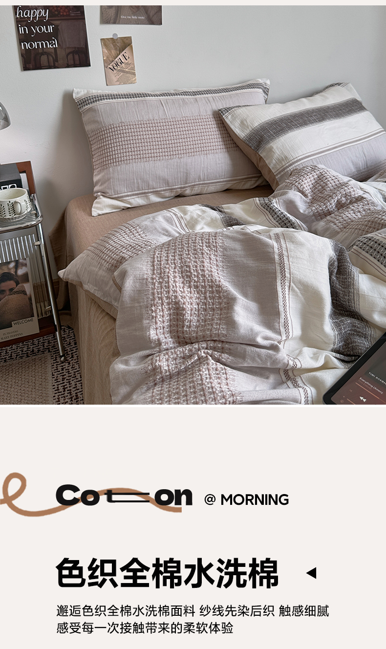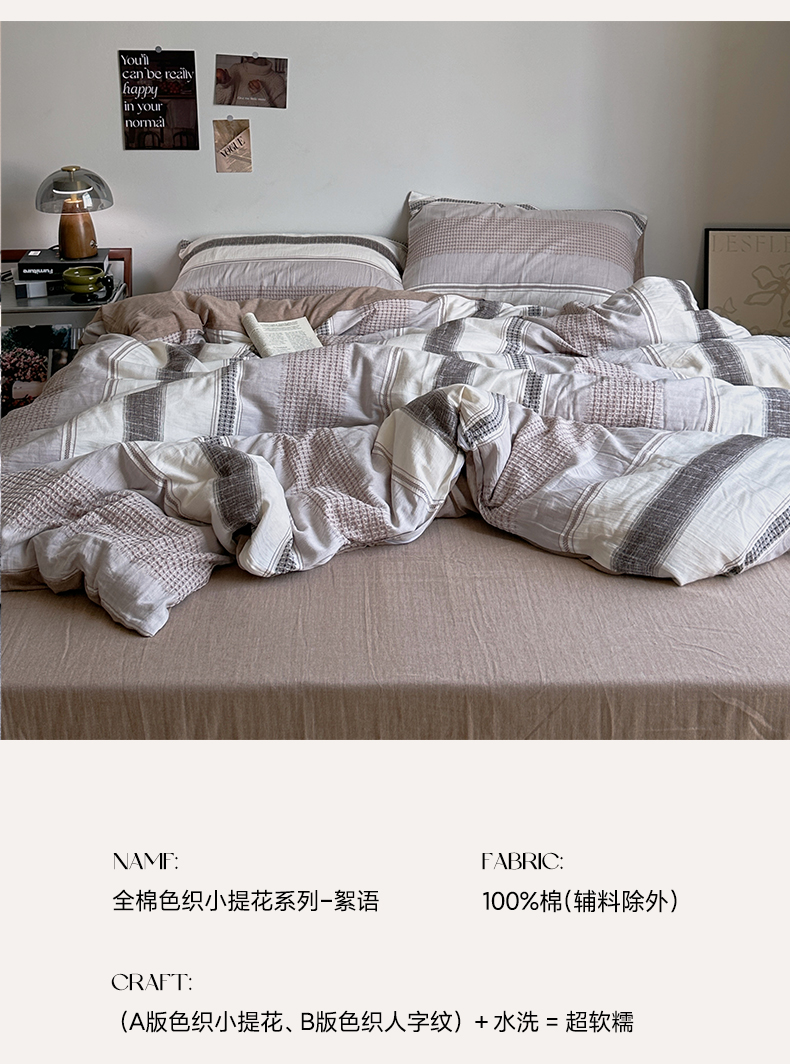 当前位置: 91家纺网 > 商品网购 > 床品套件 > 四件套 > 色织四件套 > 艾咪-Amy ntmy 2025新款全棉色织小提花四件套-絮语 透明PE袋(如需手提无纺布包+5元) 絮语-咖