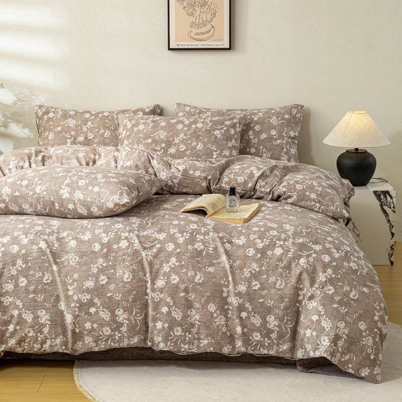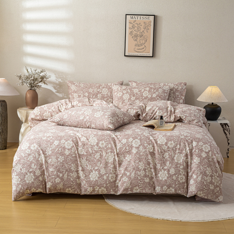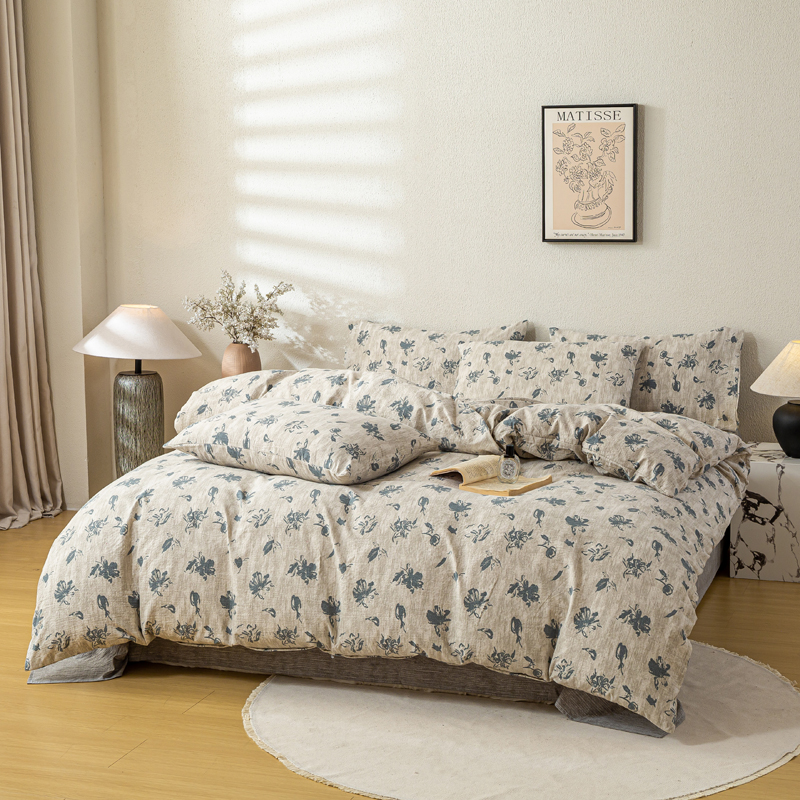 商品名称:七里香 2025秋冬新品A类加厚高克重原麻复古风亚麻皱皱纱印花四件套 布袋装组合图