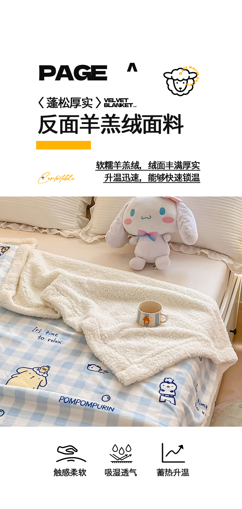 当前位置: 91家纺网 > 商品网购 > 毛毯休闲毯绒毯 > 毛毯 > 金爱家 2025新款A类三丽鸥正版授权少女可爱卡通加厚牛奶绒羊羔绒毛毯多功能四季毛毯毯子 绒毛毯-MT三丽鸥蓝格布丁狗
