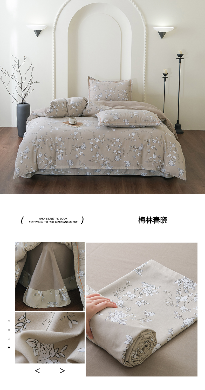 慕绸家纺(原萌宝老粗布厂家) 2025秋冬新款加厚纯棉磨毛印花四件套 梅林春晓