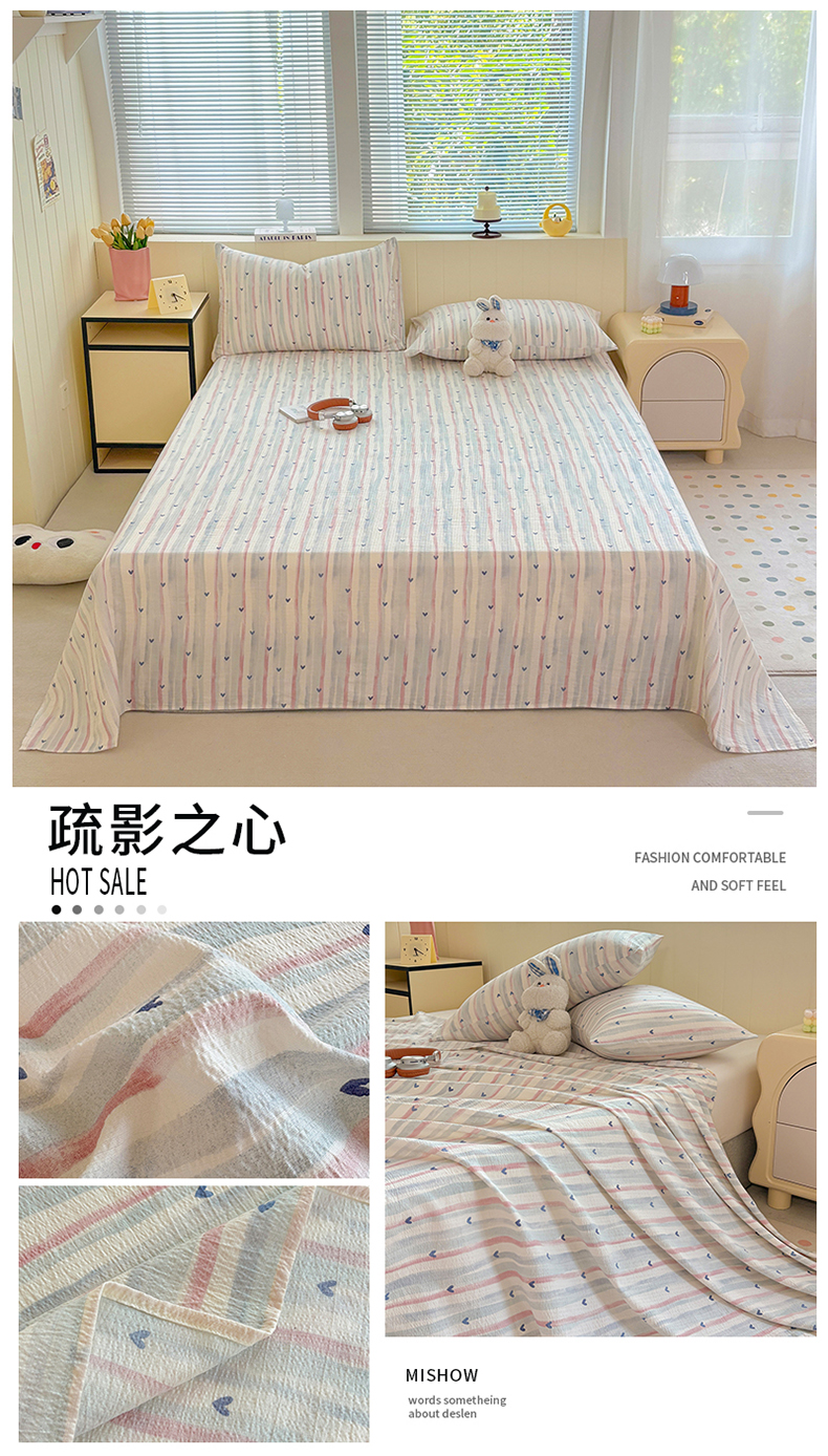 (总)青泽家纺 2025新款水洗棉皱皱纱双层纱床单三件套,芝士奶酪,半亩花田,田园女孩,疏影之心,南瓜派对,萌兔兔,萌宠乐园,梨花落,花园小兔,花间序语,海盐耶耶,乖乖象,格子小狗,豆蔻年华,花轻舞,半岛红茶