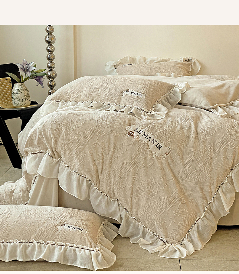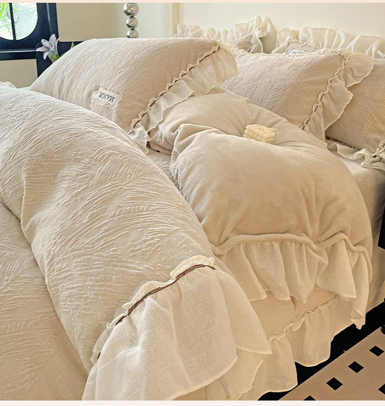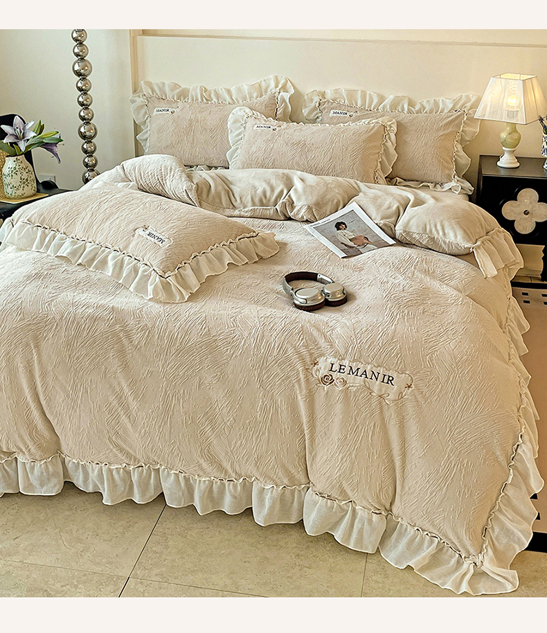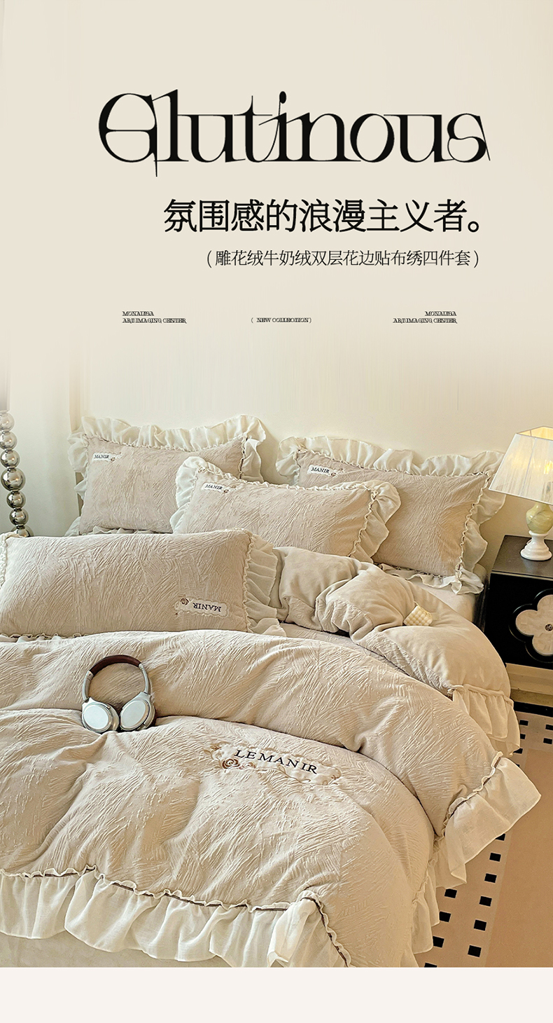 (总)十方家居 2025新款9斤加厚雕花绒全棉纱布韩版双层花边贴布绣高克重全消光牛奶绒四件套