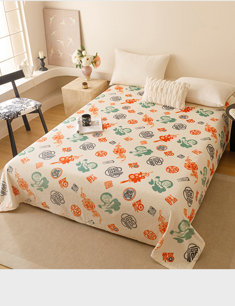 悦然毛巾被 2025新款300克印花牛奶绒盖毯休闲毯素色毛毯毯子 百福毯玉