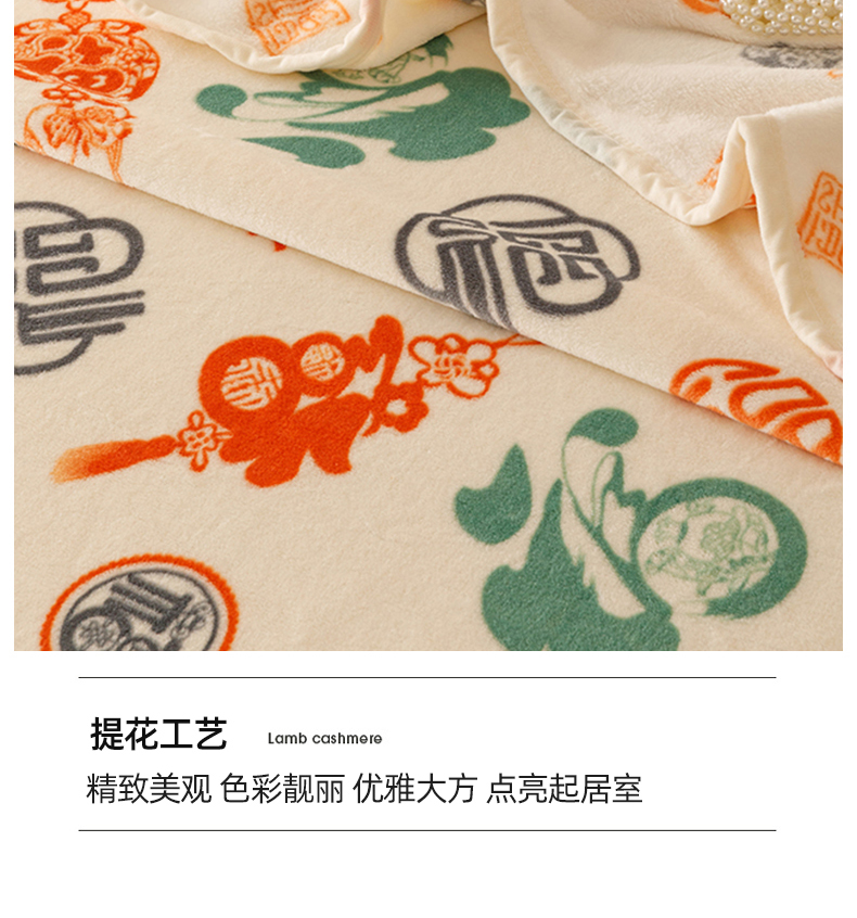 商品名称:悦然毛巾被 2025新款300克印花牛奶绒盖毯休闲毯素色毛毯毯子 百福毯玉