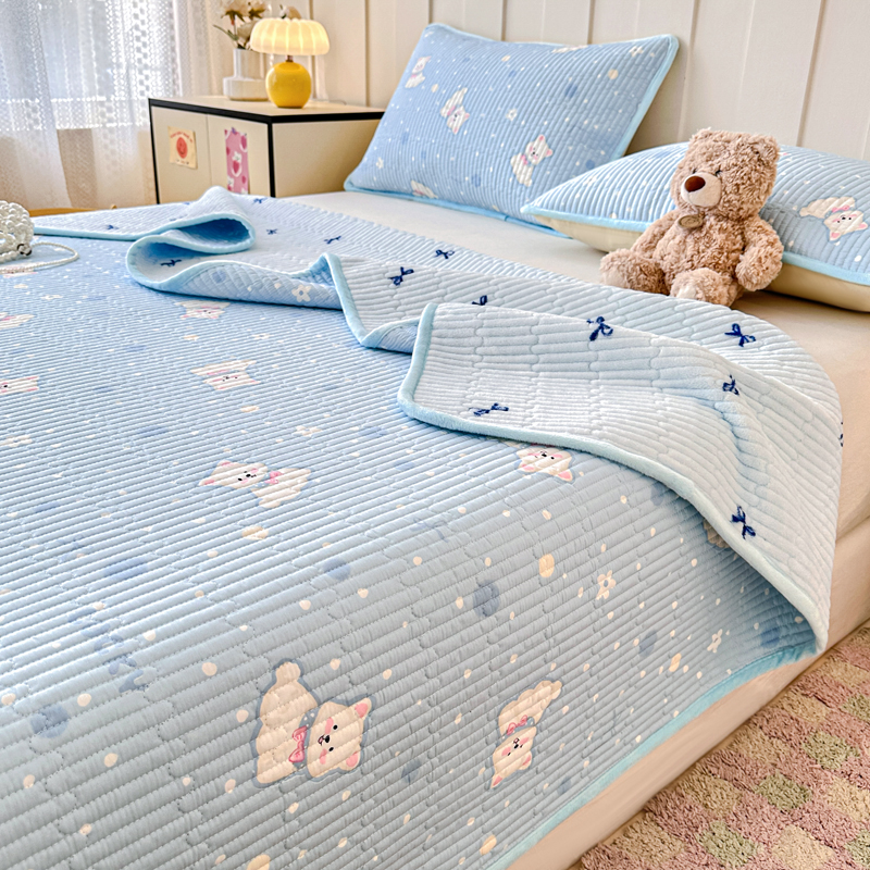 岚吉家纺 2025新款全棉133*72宝宝绒棉加绒一面纯棉一面牛奶绒双面可用单床盖学生床床垫 床盖单件 泡芙狗狗