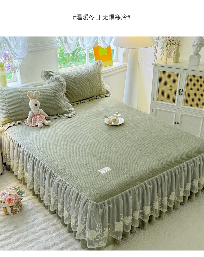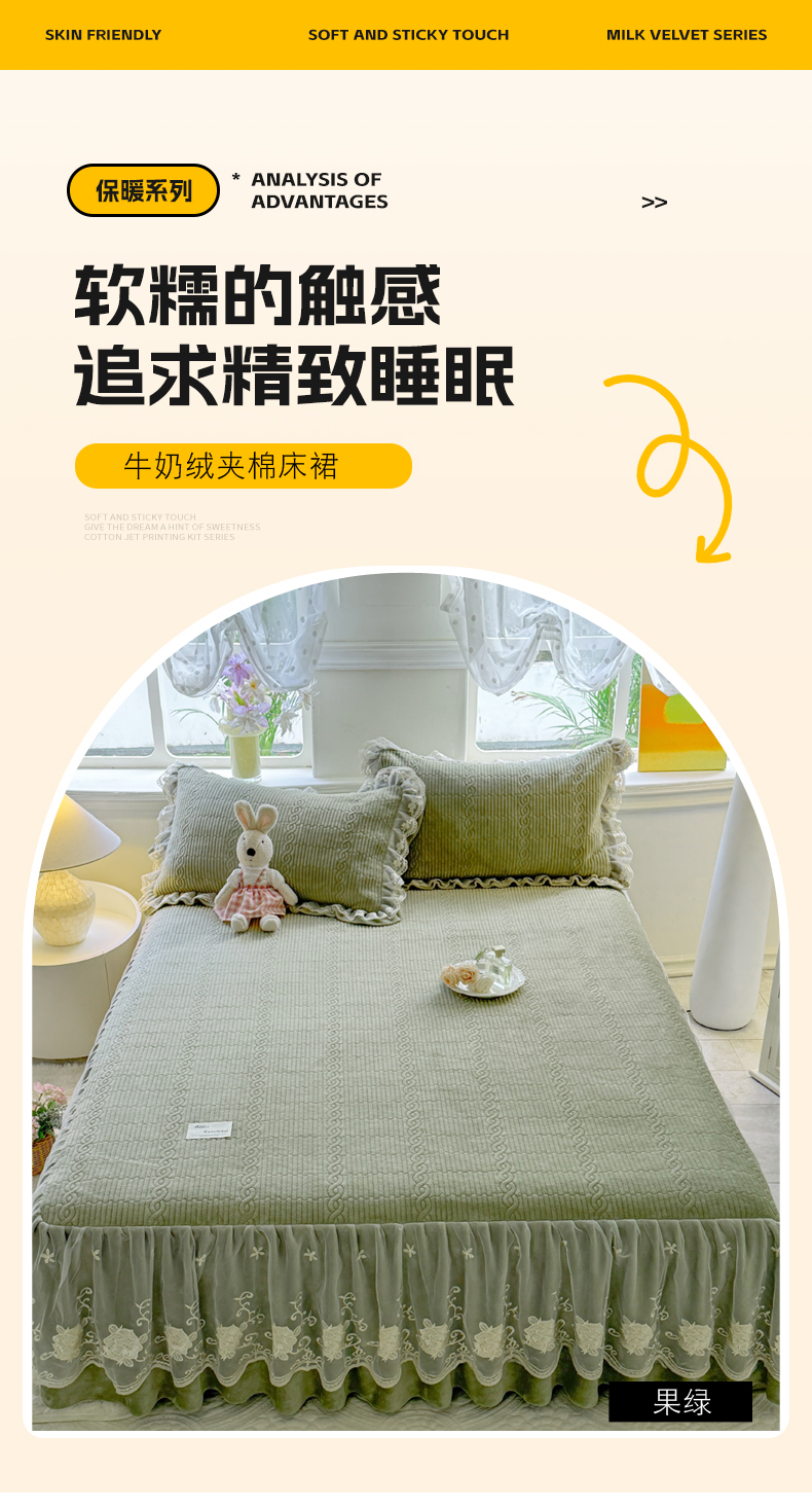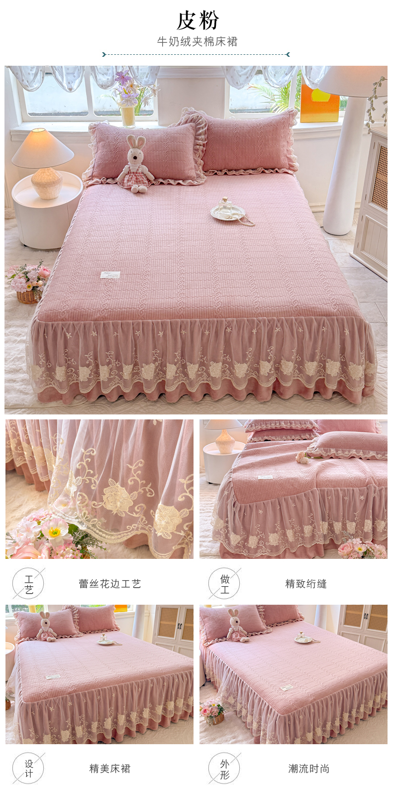• 91家纺网 家纺一手货源 找家纺 美达家纺 2025新款牛奶绒纯色夹棉床裙 牛奶绒夹棉床裙-咖