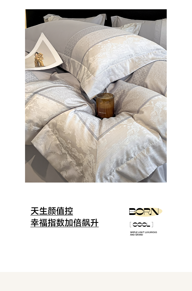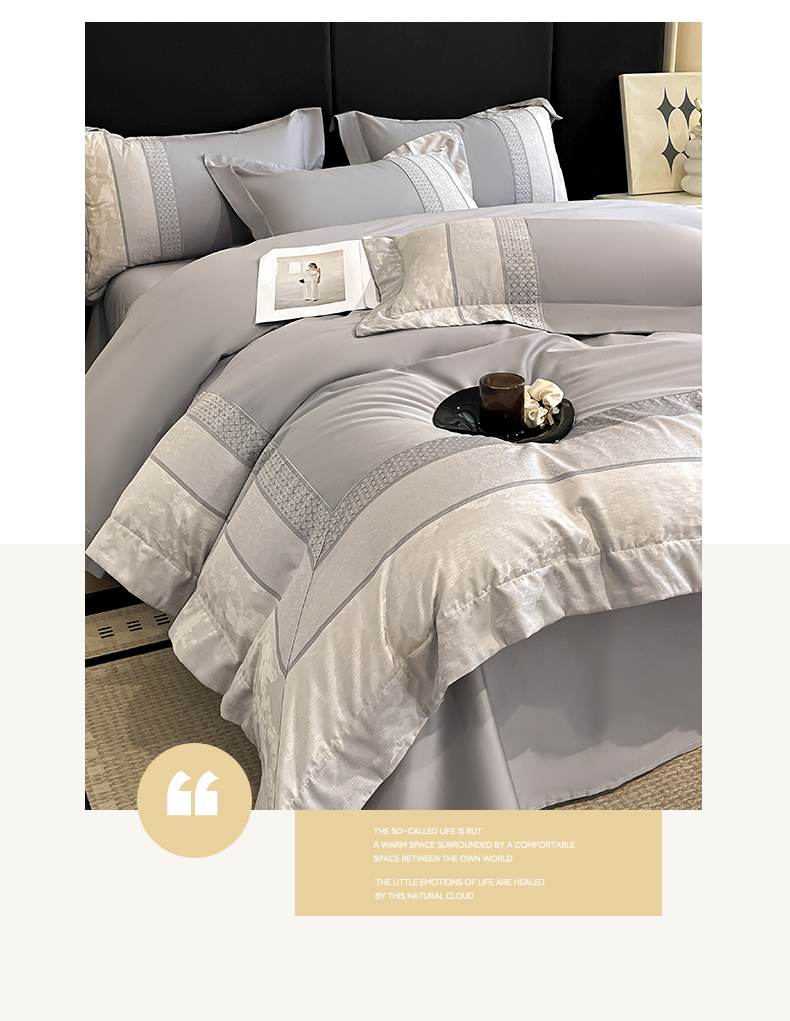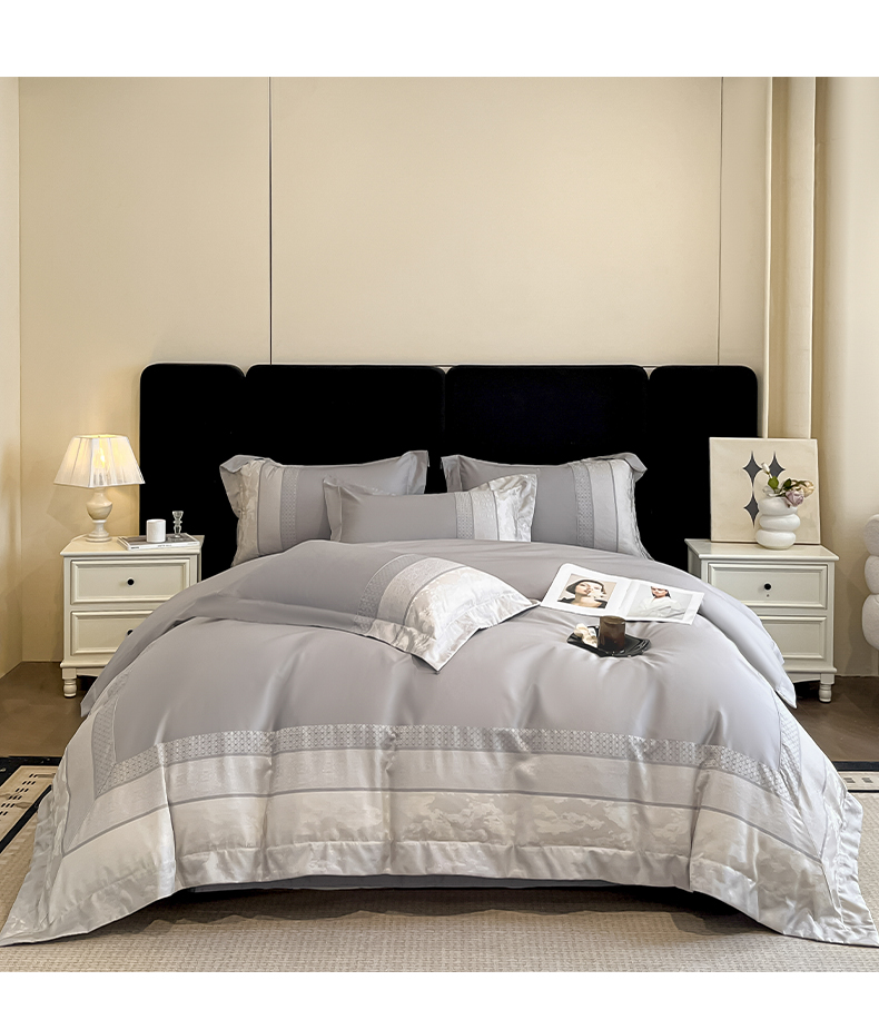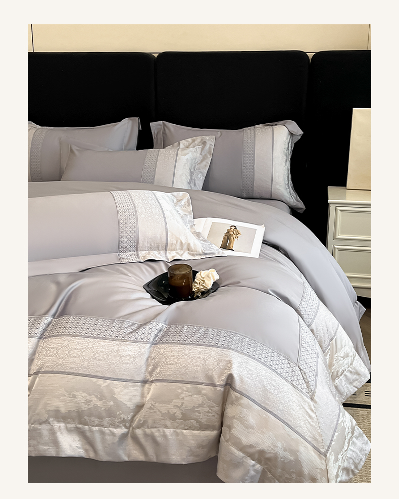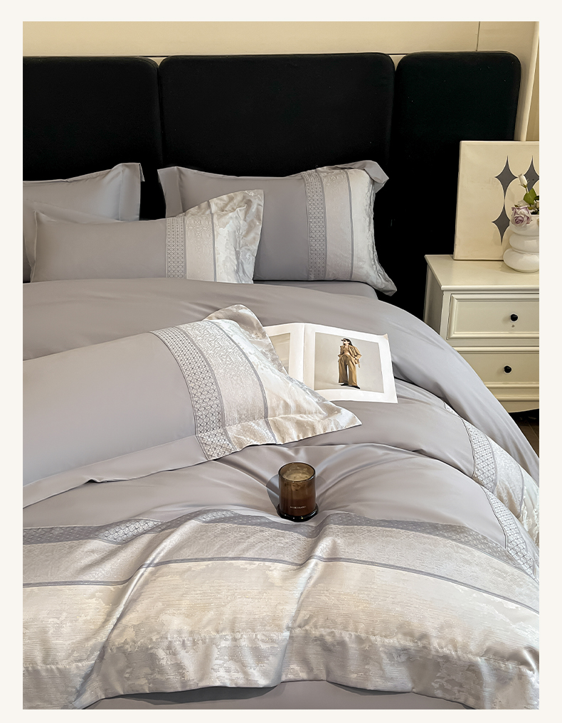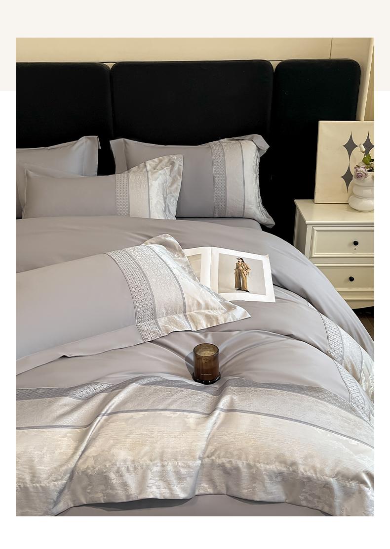商品名称:博纳家纺 2025新款多色色织提花宽边高级简奢款亲肤棉四件套-纸落云烟 纸落云烟-浅灰