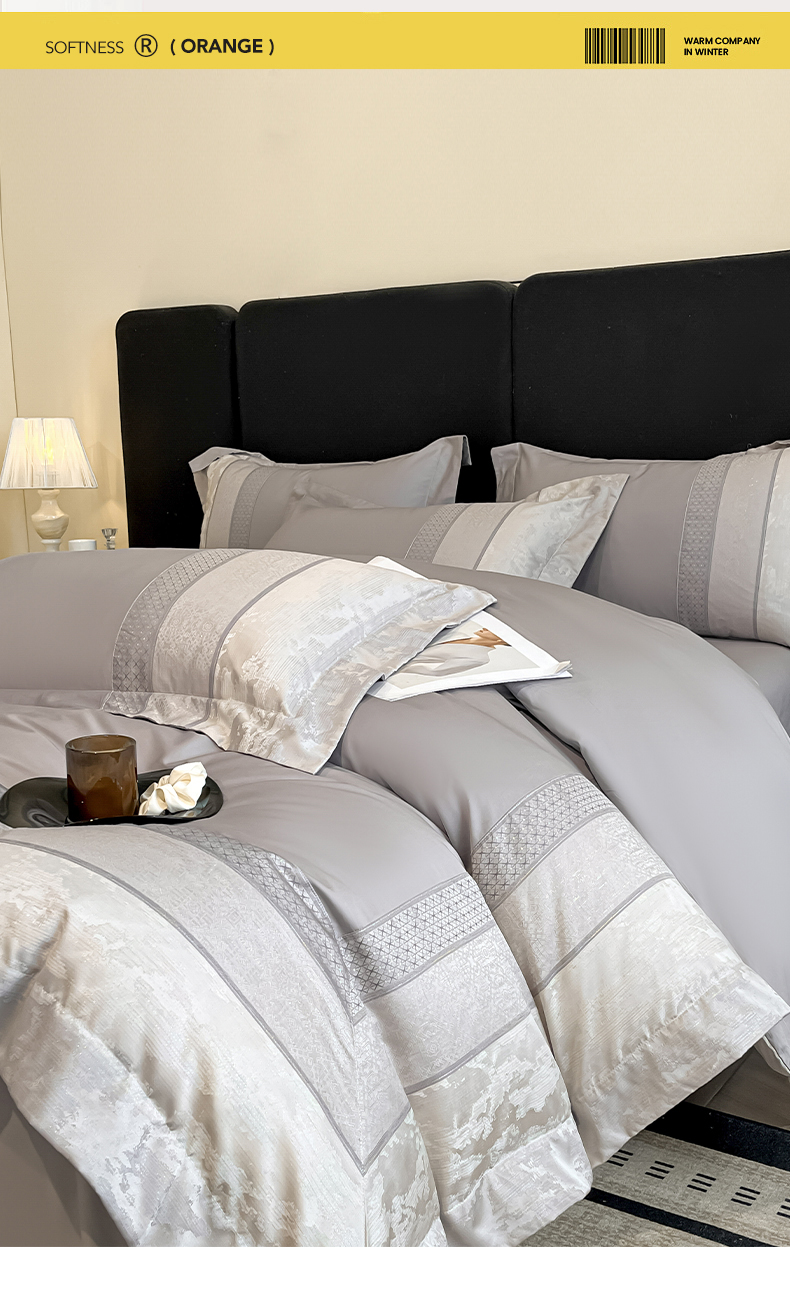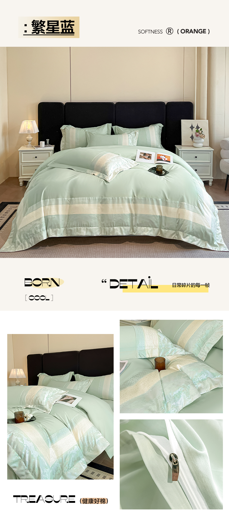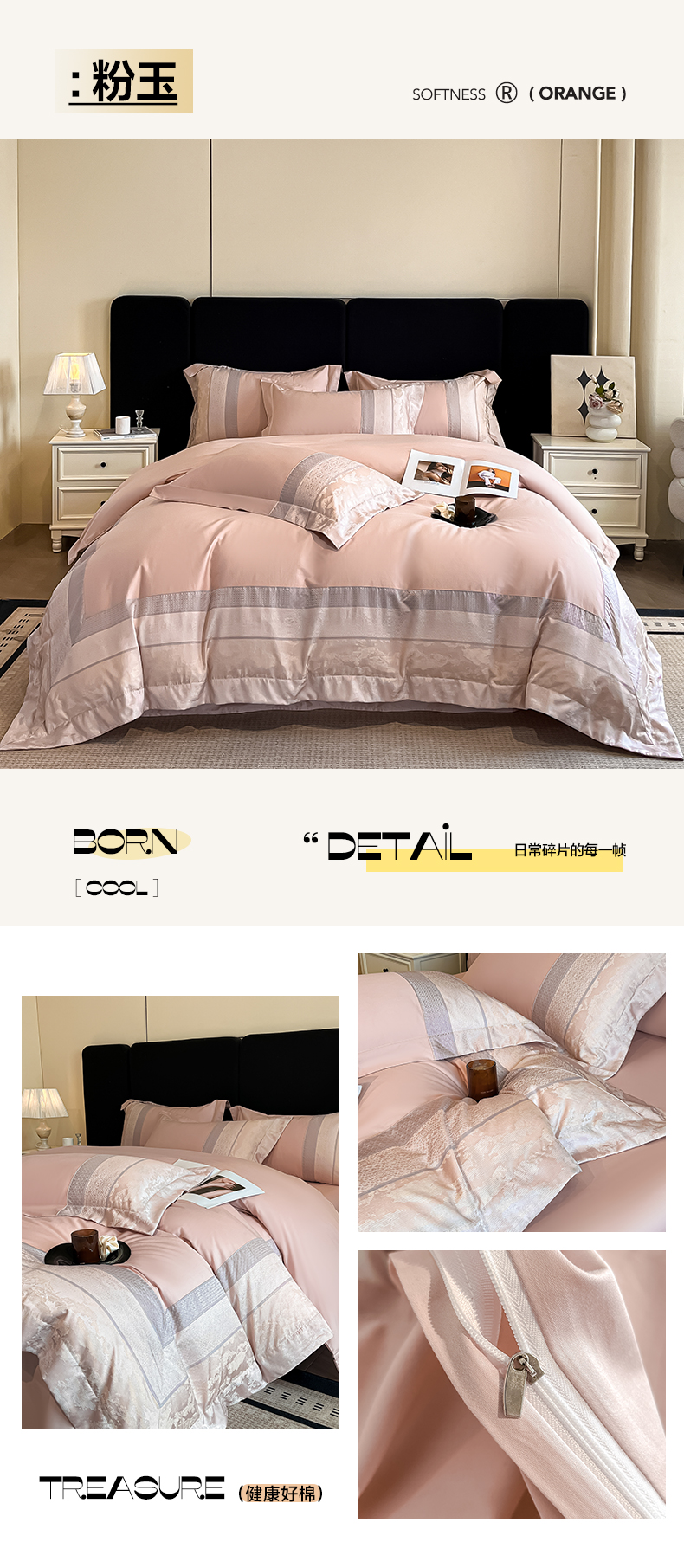 (总)博纳家纺 2025新款镂空大宽边拼角高级简奢款亲肤棉四件套-山水提花,繁星蓝,粉玉,高级灰,香槟,象牙白