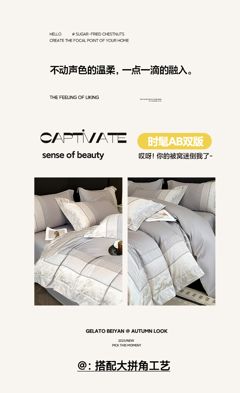 (总)博纳家纺 2025新款双色宽边高级简奢款四件套-维多利亚,高级灰,咖色,香槟,象牙白