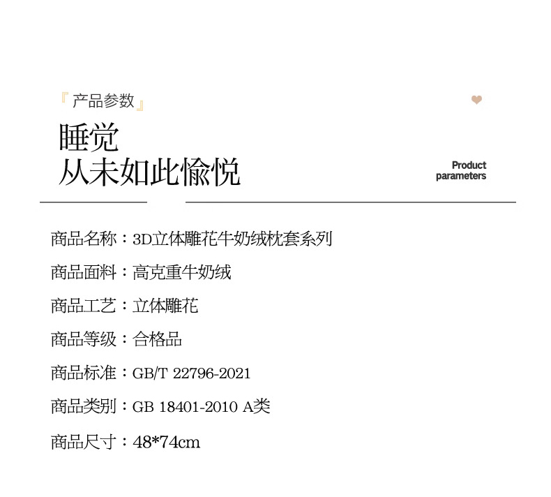 商品名称:(总)倾慕 2026新款3D立体雕花牛奶绒单枕套