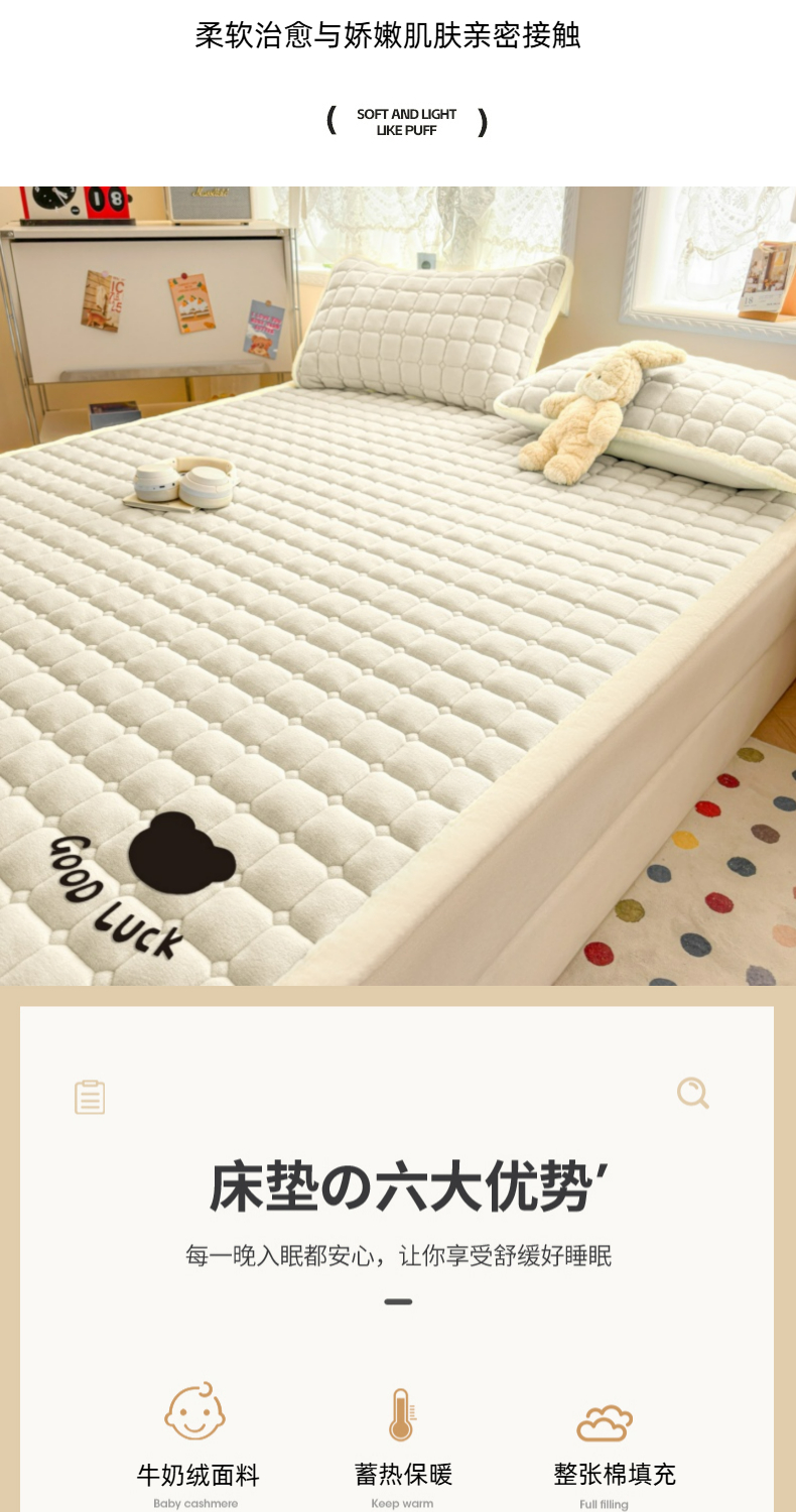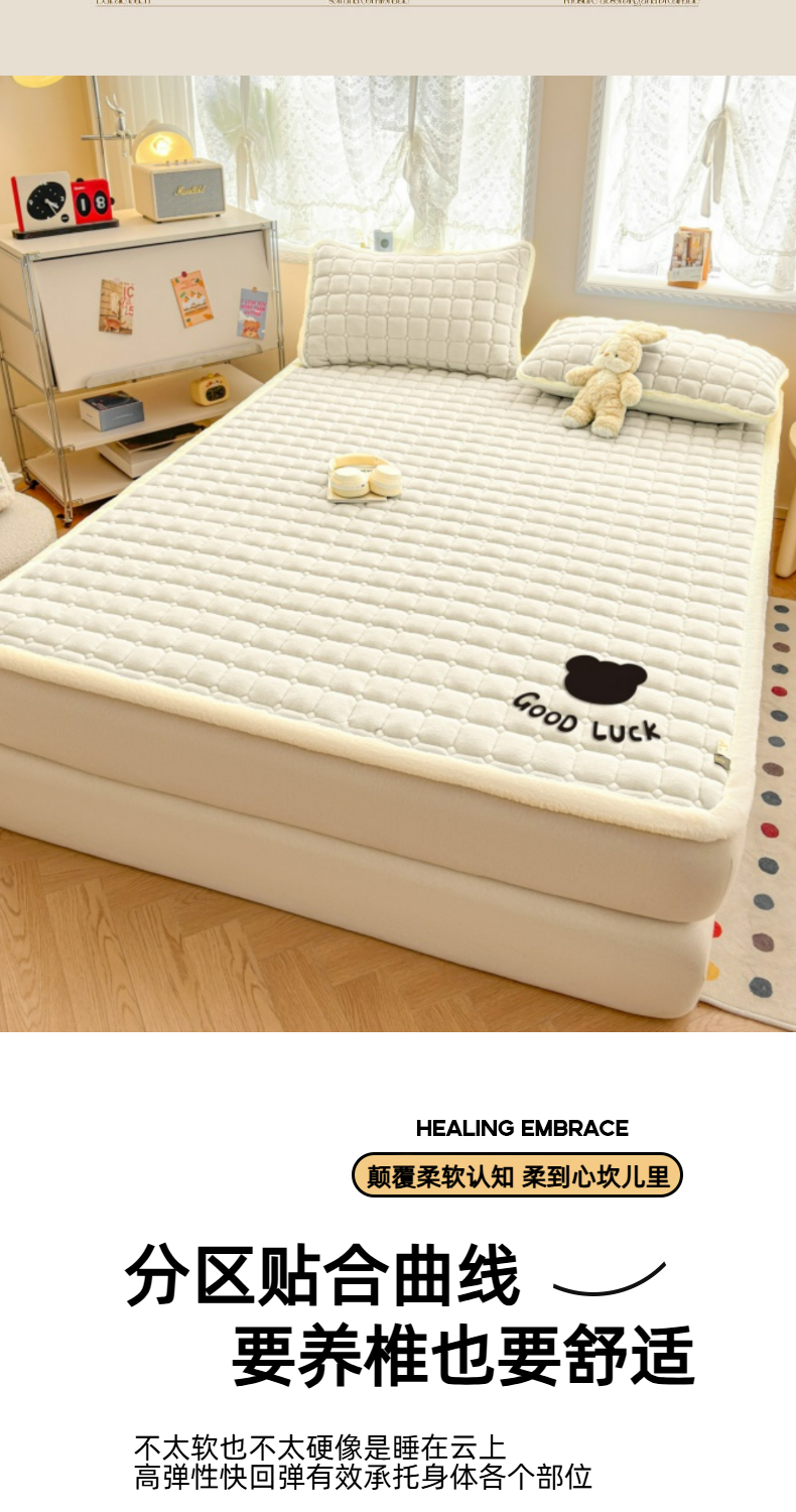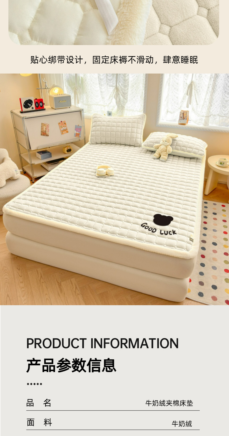 当前位置: 91家纺网 > 商品网购 > 床垫/床褥 > 普通床垫 > 爱屋及屋 2025新款牛奶绒纯色床护垫-好运熊大床系列 米白